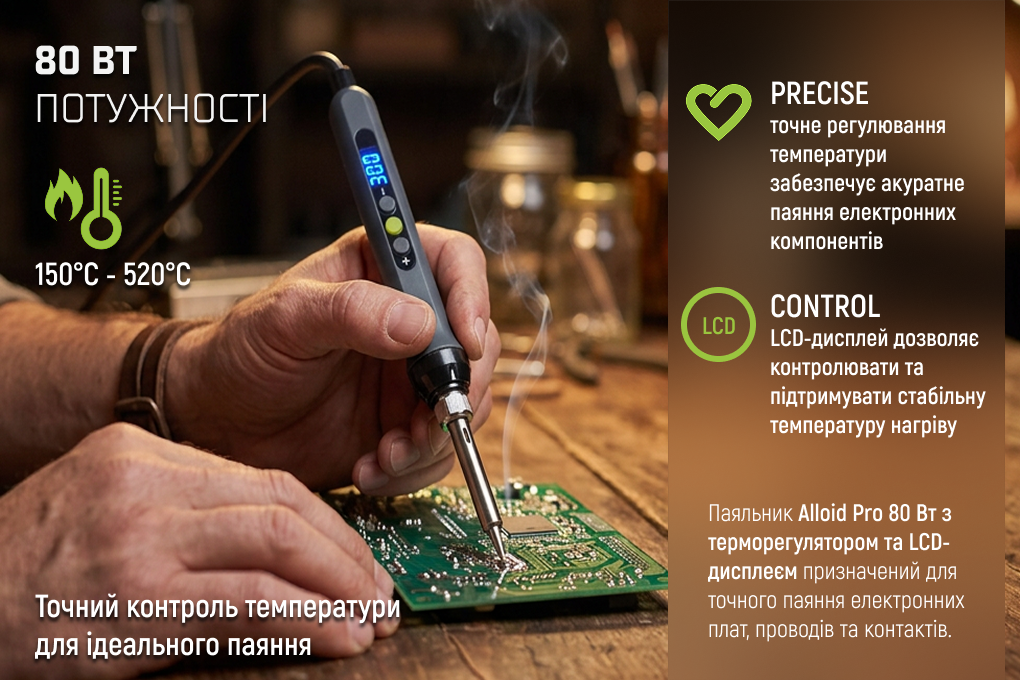 Alloid Pro. Паяльник электрический с керамическим нагревателем, терморегулятором и LCD дисплем, 80Вт
