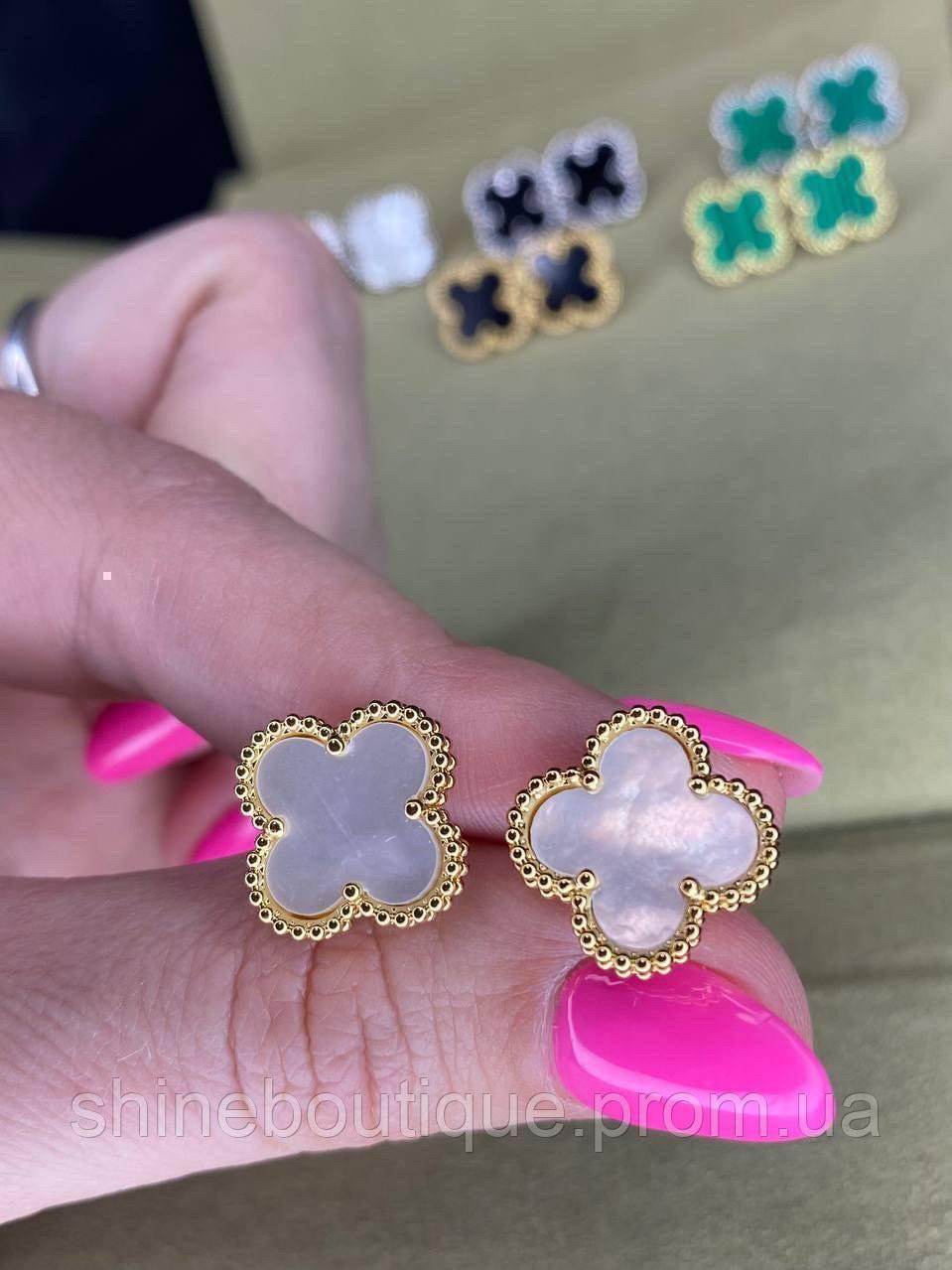 Серьги Van Cleef клевер - изысканное творение ювелирного искусства! Если вы хотите осчастливить женщину, закажите это роскошное украшение. Заказывая серьги в стиле Ван Клиф вместе с цепочкой или браслетом, вы получите скидку 5%! Купить Какими особенностями обладают серьги Ван Клиф клевер Удобная застежкаСерьги имеют универсальную и удобную застежку гвоздик, которая подходит к любой мочке уха. Украшение с такой застежкой идеально подходит к повседневному образу, смотрится элегантно, станут изюминкой вашего стиля Изысканный дизайнСерьги Ван Клиф с перламутром изготовлены в виде белого цветка клевера размером 1,5 см, в тонкой золотистой огранке. Они имеют утонченный внешний вид, подойдут как к легкому летнему платью, так и к деловому образу Прочный материалУкрашение изготавливается из высококачественной ювелирной стали, которая покрывается трехслойным напылением золота, 750 пробы. На изделие с обратной стороны нанесена гравировка логотипа Van Cleef ДолговечностьЗолотые серьги Van Cleef будут долго служить своей обладательнице, сохраняя свой первозданный внешний вид и сияние. Материал не темнеет под воздействием влаги и ультрафиолетового излучения Преимущества покупки элитной бижутерии в интернет-магазине «ShineBoutique» Проверенное качество Наша компания сотрудничает с надежными и проверенными производителями уже много лет и гарантирует высокое качество всех ювелирных изделий. На серьги, браслет Тиффани из бусин отзывы клиентов свидетельствует о их безупречных свойствах в эксплуатации Подарочная упаковка Сережки упакованы в стильный бархатный мешочек с завязками с логотипом бренда. Если вы хотите оформить подарок более презентабельно, мы можем предложить дополнительно купить комплект для упаковки - бархатную коробку, сертификат, пакет в фирменном оформлении Van Cleef Консультации специалистов Наш многолетний опыт работы с элитной бижутерией позволяет нам удовлетворять запросы каждого клиента. Мы проконсультируем, предоставим детальную информацию о продукции, поможем сделать выбор, с учетом личных пожеланий покупателя Доступная цена На серьги Ван Клиф золото цена доступная и выгодная для клиентов, что обусловлено инновационными технологиями производства, использованием доступных материалов, работой с производителями без посредников. Умеренные цены позволяют создать свою личную коллекцию украшений на любой вкус Нужна консультация? Звоните! Как мы работаем с клиентами магазина «ShineBoutique» Принимаем заказ Мы принимаем заказы разными способами - через форму на сайте, в телефонном режиме, в мессенджерах Telegram, Viber. Обрабатываем заявкуОбрабатываем ваш заказ, связываемся для уточнения и согласования деталей, подтверждения данных. Принимаем оплатуМы работаем по полной предоплате - через Пром оплату, безналичным переводом на карту, или по частичной - 100 грн, а остаток наложенным платежом при получении. Отправляем заказ Мы отправляем заказы по всей Украине через транспортную компанию Новая почта. Возможна отправка Укрпочтой при полной предоплате. Самовывоз - по предварительной договоренности. Клиенты о нас! серьги VCll Все гравировки лого 1,5 см цветок Застежка гвоздик Бижутерия с позолотой 750 пробы в комплекте брендовый мешочек есть люксовая упаковка дополнительно комплект( коробочка, пакетик, сертификат)