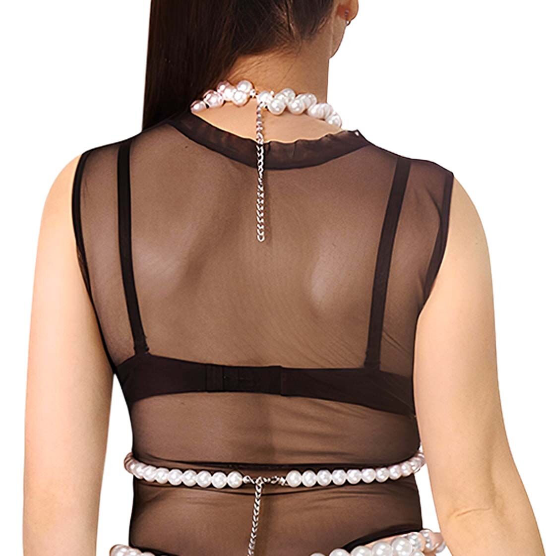 Массивный жемчужный чокер переходит в каскадные ряды, добавляя образу характер и немного провокации. Сзади расположена регулируемая цепочка, что обеспечивает комфортную посадку и уверенность в каждом движении. Топ идеально подходит для вечеринок, клубов или романтических встреч, позволяя вам чувствовать себя уверенно и привлекательно.