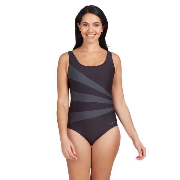 КупальникCOOGEE SONICBACK, производитель ZOGGS (Италия) Задайте нужный темп в Coogee Sonicback – великолепном компактном черном купальнике! Бюстгальтер-полычка с легкой поддержкой имеет лямки средней ширины. Этот купальник с открытой спиной идеально подходит для повышенной гибкости и свободы движений в области лопаток. Купальник изготовлен из сверхмягкой, быстросохнущей и устойчивой к хлору ткани Ecolast, изготовленной из переработанных пластиковых отходов. Особенности: Поддерживающие лямки средней ширины Бюстгальтер с фиксированными поролоновыми чашками Подкладка из сетки в области живота для поддержки Средний вырез бедра Изготовлен из ткани Ecolast+TM, в которой используется пряжа REPREVE®, создана из переработанных пластиковых бутылок, что является заботой об окружающей среде Ткань прочная, эластичная и на 100% устойчивая к хлору Состав: 55% переработанный полиэстер, 45% полиэстер PBT Уход за купальником: Ополаскивайте купальник в пресной холодной воде после каждого использование Машинная стирка применяется с использованием мягкого моющего средства и при температуре 30 °С Сушить купальник следует в затемненном месте Не применять отбеливатели Не сушить в сушильной машине или на радиаторе отопления Никогда не храните купальники мокрыми в течение длительного времени избегайте контакта с грубыми поверхностями, царапающимися избегайте химических веществ, таких как хлор, солнцезащитный крем, парфюм, дезодорант, автозагар избегайте длительного воздействия солнечных лучей, поскольку это может привести к выцветанию красок