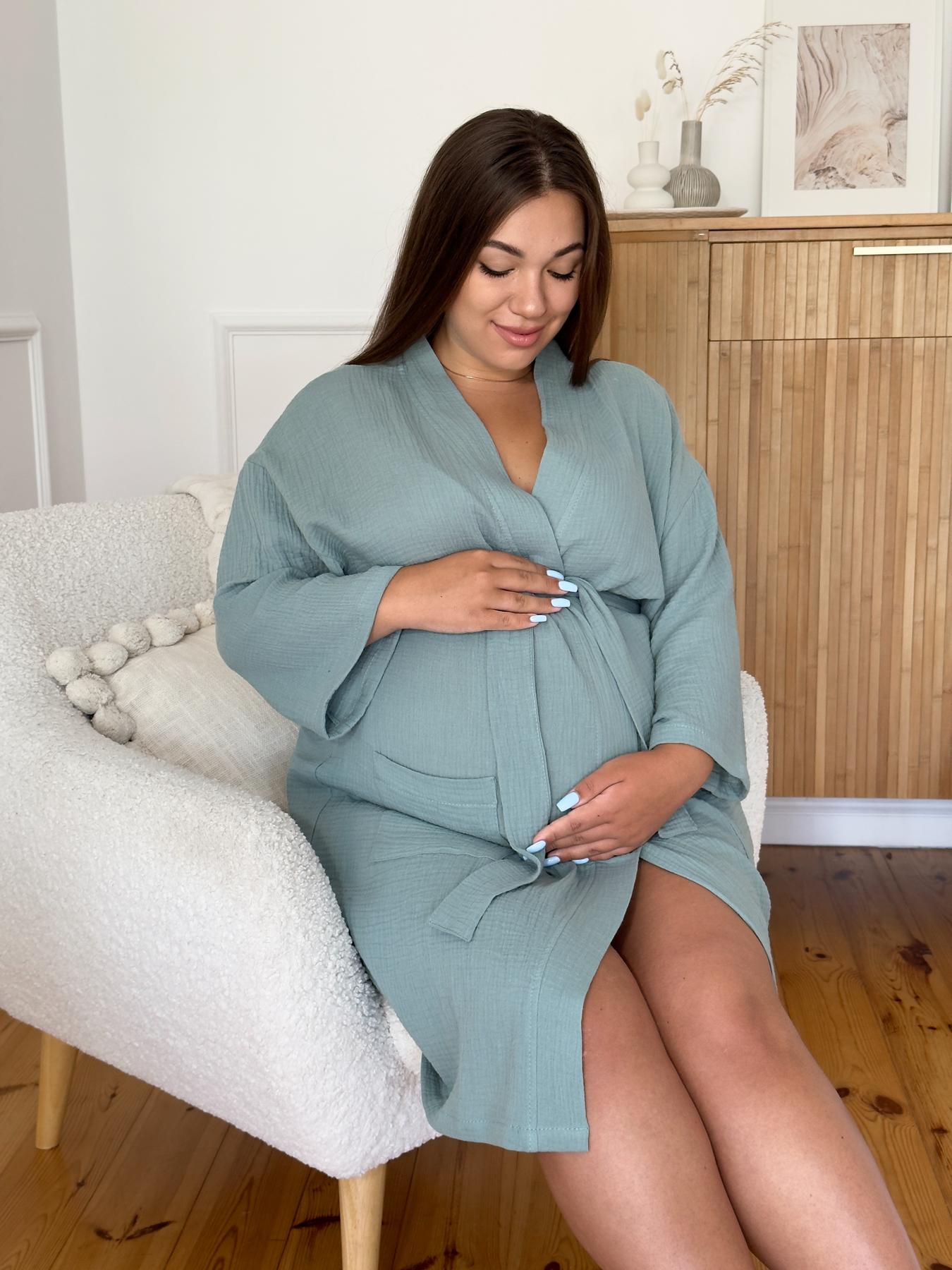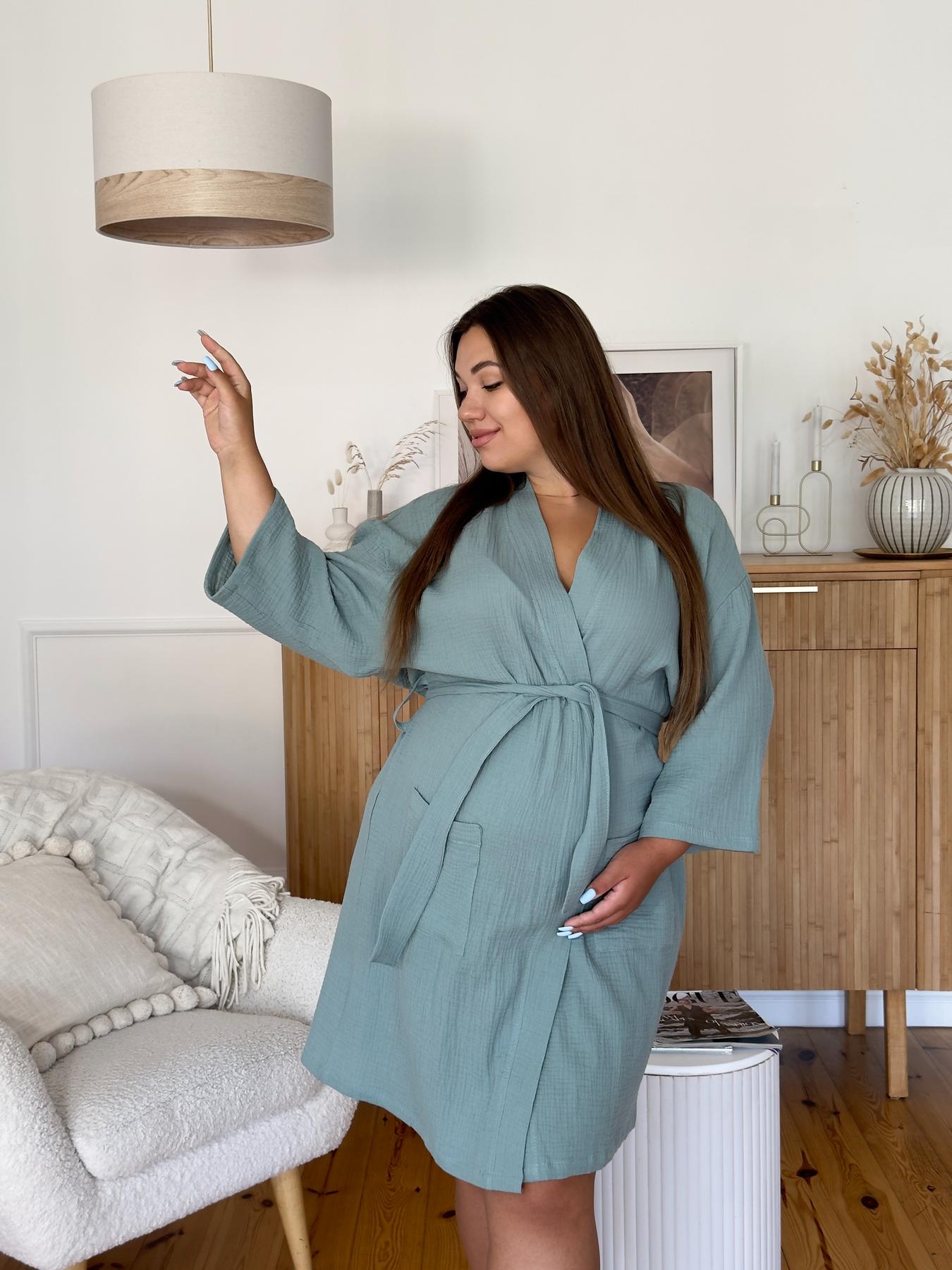 Женский Халат Для Беременных Демисезонный Муслин Оливковый 100% Хлопок Cosy Денвер Жіночий Халат Для Вагітних Демісезонний Муслін