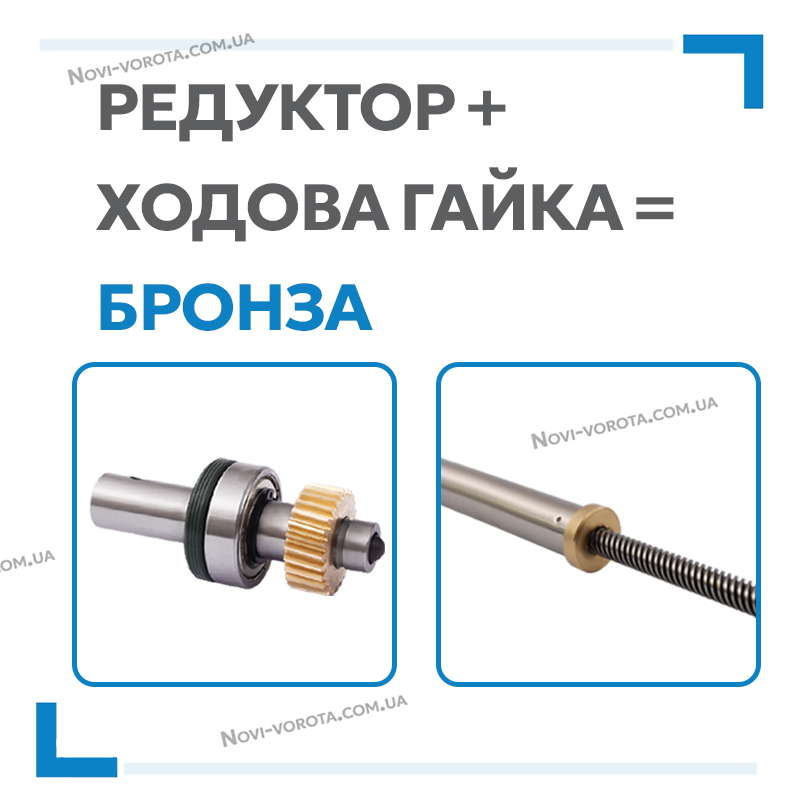 Также важно, чтобы редуктор был без пластика. Хоть пластиковые шестерни более дешевые в производстве, и они очень быстро изнашиваются. У автоматики Edinge M5 редуктор полностью металлический. Он состоит из бронзовой шестерни и надежного стального червячного механизма. Такое сочетание идеально, поскольку таким образом уменьшается износ деталей.