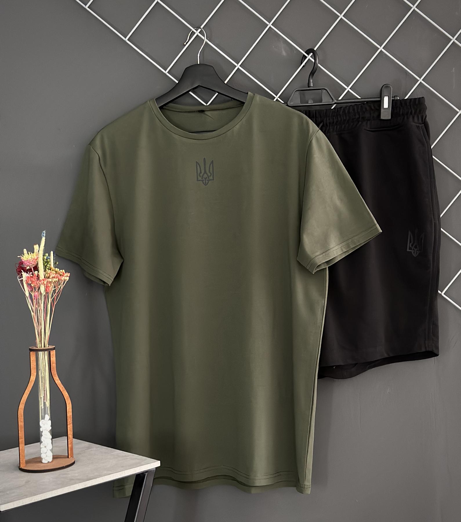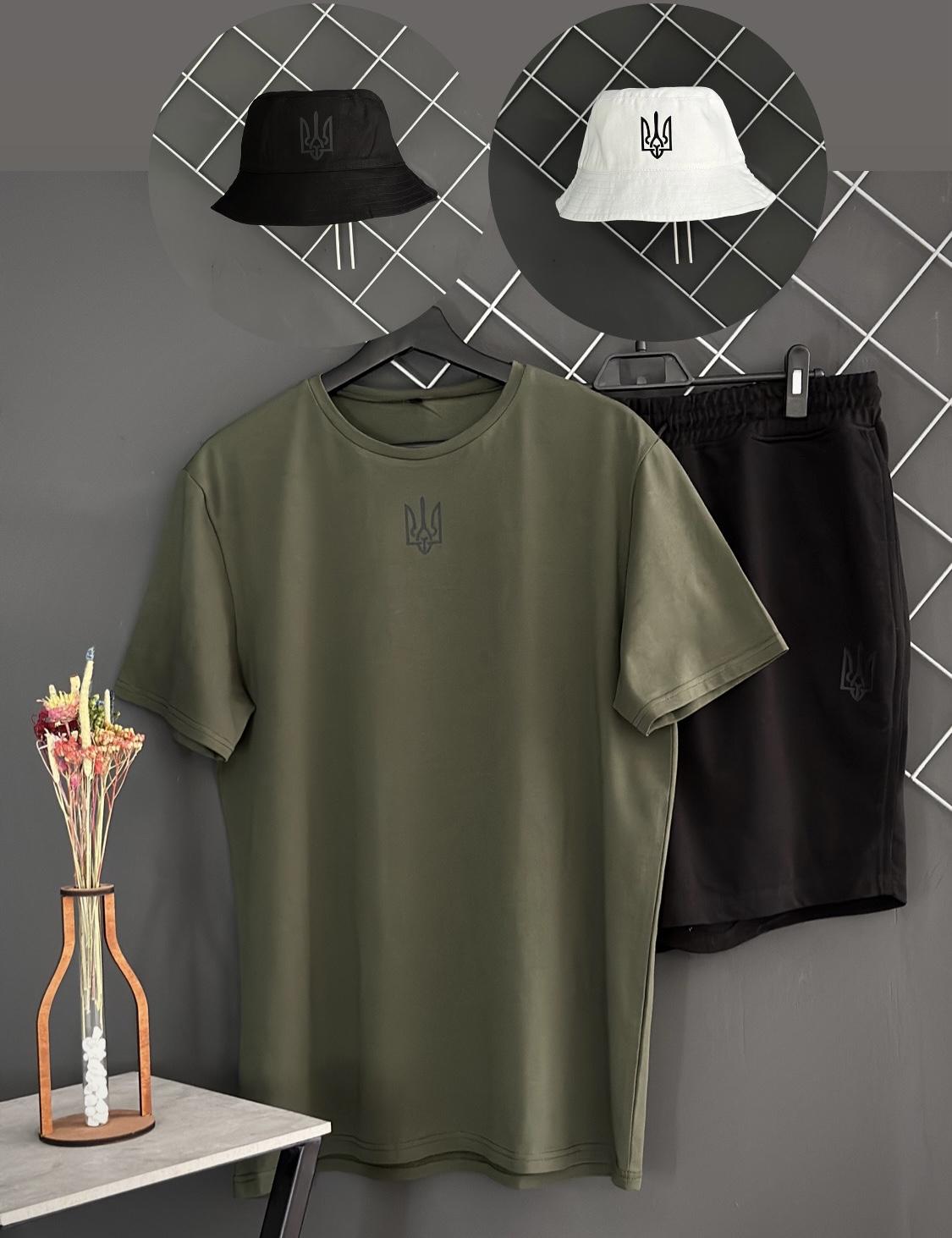 Наш комплект включает черные шорты с гербом, футболку хаки с гербом и панаму, что позволяет вам выглядеть стильно и чувствовать комфорт в любое время. Футболка изготовлена из высококачественного стрейч-коттона, что обеспечивает отличную посадку и удобство при ношении. Она подходит для весеннего, летнего и осеннего сезона.