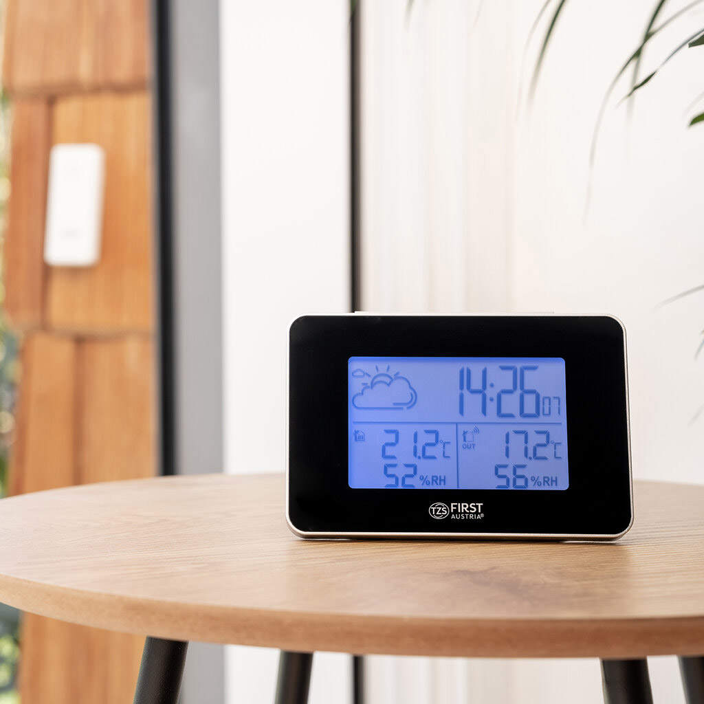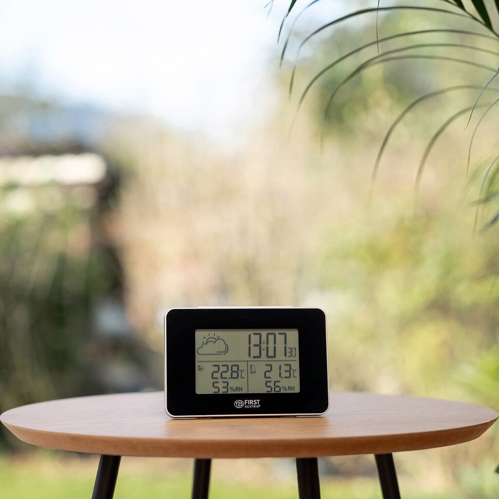 Метеостанция First Austria FA-2461-6 — это современный прибор, обеспечивающий точный мониторинг погодных условий как внутри помещения, так и снаружи. Она предоставляет данные о температуре в диапазоне от -25°C до +50°C, а также об уровне влажности от 20% до 95%. Записи минимальных и максимальных значений за последние 24 часа позволяют отслеживать динамику изменений.