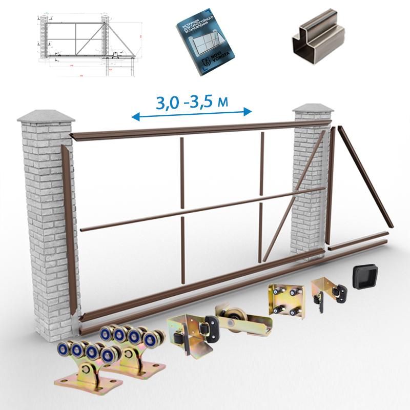 - 3. Заказать у нас готовый комплект "Свары Сам", в составе которого находятся все необходимые элементы для изготовления каркаса откатной створки, а также один из комплектов фурнитуры для откатных ворот на выбор.