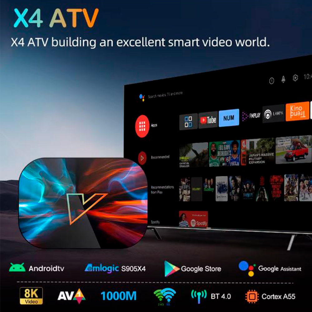 Смарт ТВ приставка Vontar X4 8K 4/64 - базируется на новом процессоре Amlogic S905X4. Из особенностей данного кремниевого чипа можно выделить тот факт, что он обладает ядрами нового поколения Cortex A55. Процессор сочетает высокую производительность и энергоэффективность, что обеспечивает быструю работу системы, плавную навигацию по интерфейсу и стабильное воспроизведение мультимедийного контента. Если верить синтетическим тестам, производительность нового процессора была повышена на 15-20%, что является большим плюсом. Энергетическая эффективность также была улучшена на примерно такой же показатель. Графическое ядро осталось прежним, Mali G31 прекрасно справляется с задачами любого уровня сложности, воспроизведения видео высокого разрешения, включая 4K и 8K-контент, или же воспроизведение требовательных Android игр.