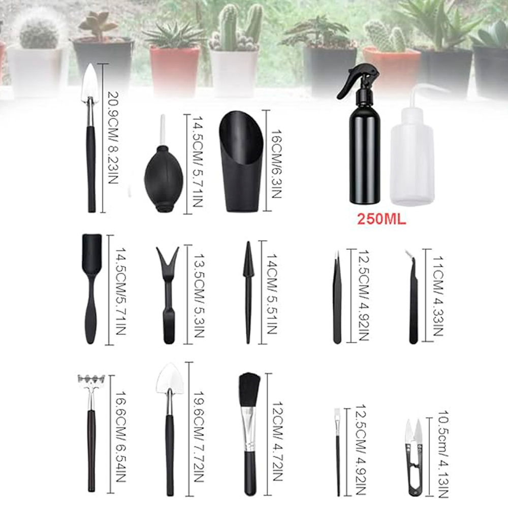 Комплект инструментов для создания флорариума и посадки суккулентов 16 в 1 - этот набор инструментов для ухода за флорариумами и суккулентами станет отличным дополнением к вашим садовым принадлежностям. С инструментами, оснащенными удобной эргономичной ручкой, пересадка и уход за растениями станут проще и безопаснее. Каждый инструмент спроектирован для обеспечения правильного ухода за вашими суккулентами, минимизируя риск повреждения растений.