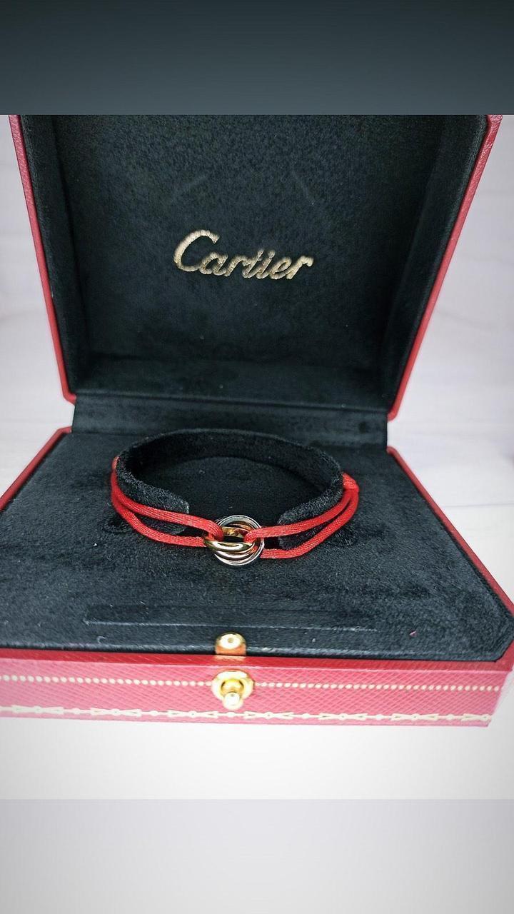 Браслет картье 17 размер красная нить тринитки брендовая женская ювелирная сталь в позолоте Cartier
