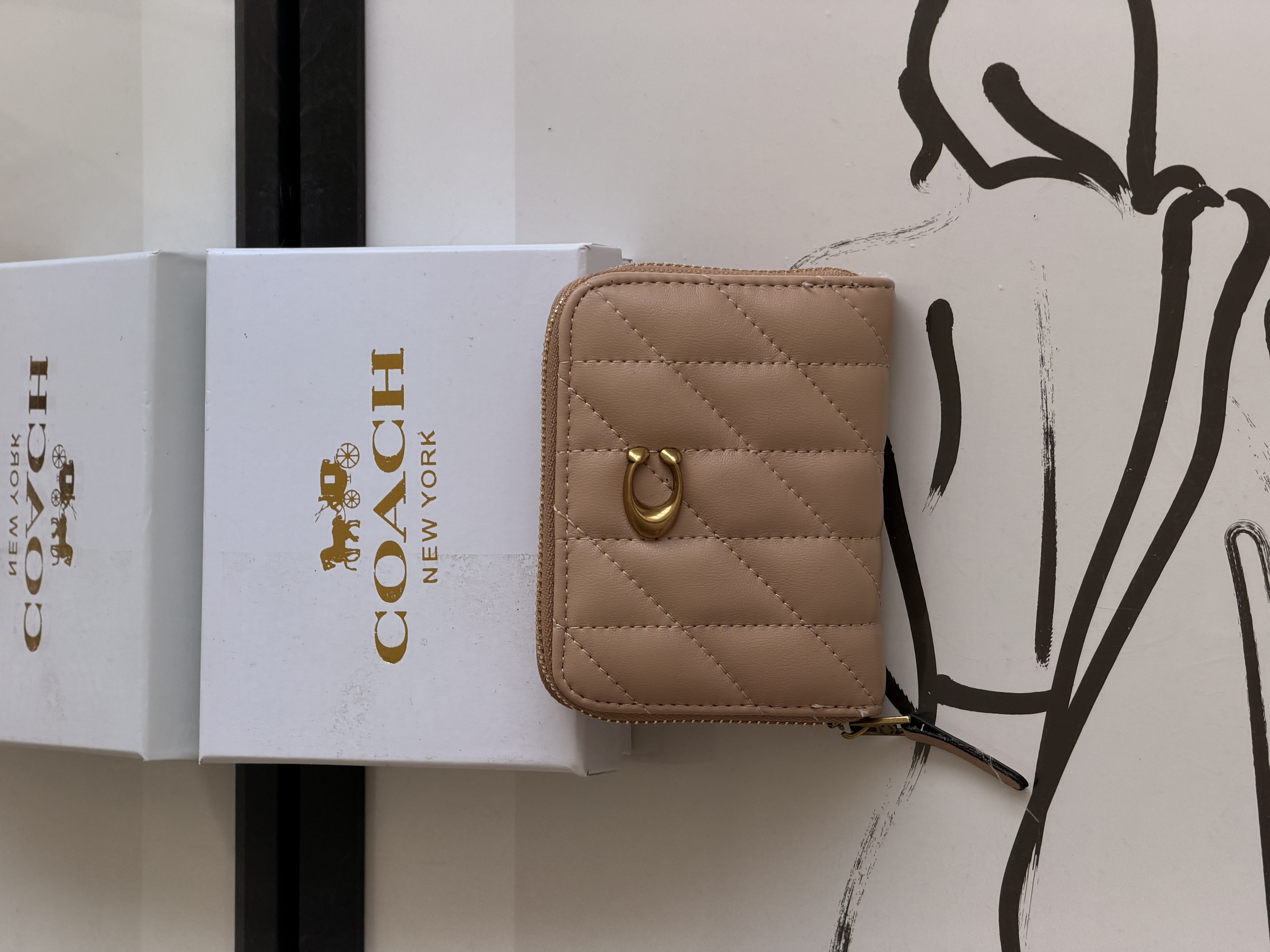 Женский кошелек коуч брендовый бежевый мягкий стеганый из эко-кожи Coach