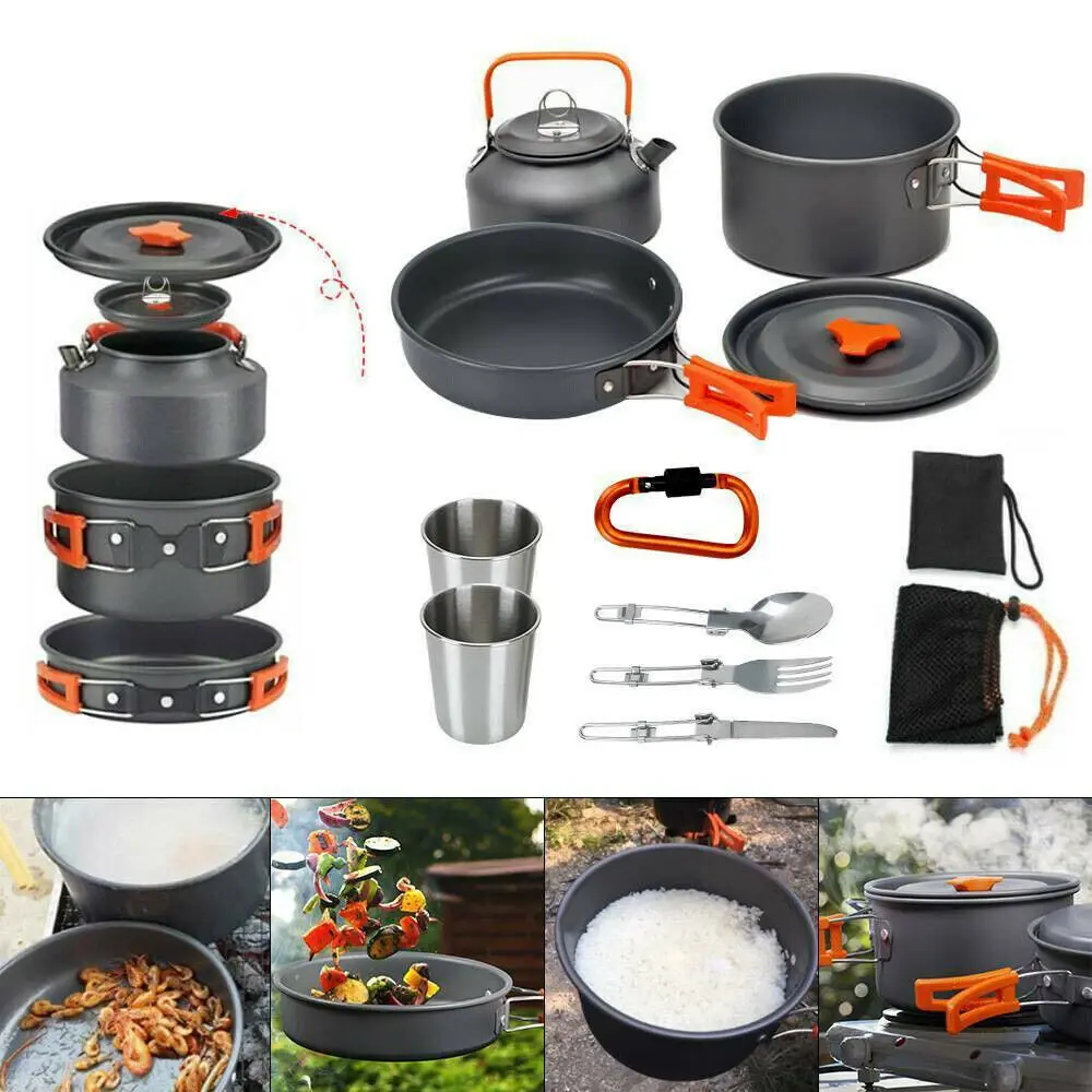 Посуда для туризма спроектирована с учетом всех потребностей туристов. Ручки открыты для производства на открытом огне. Набор легко собирается и упаковывается в специальный мешок для защиты посуды от повреждений и загрязнений. Этот алюминиевый кемпинговый набор станет вашим надежным спутником в любых путешествиях, обеспечивая комфорт и удобство на каждом шагу вашего пути.