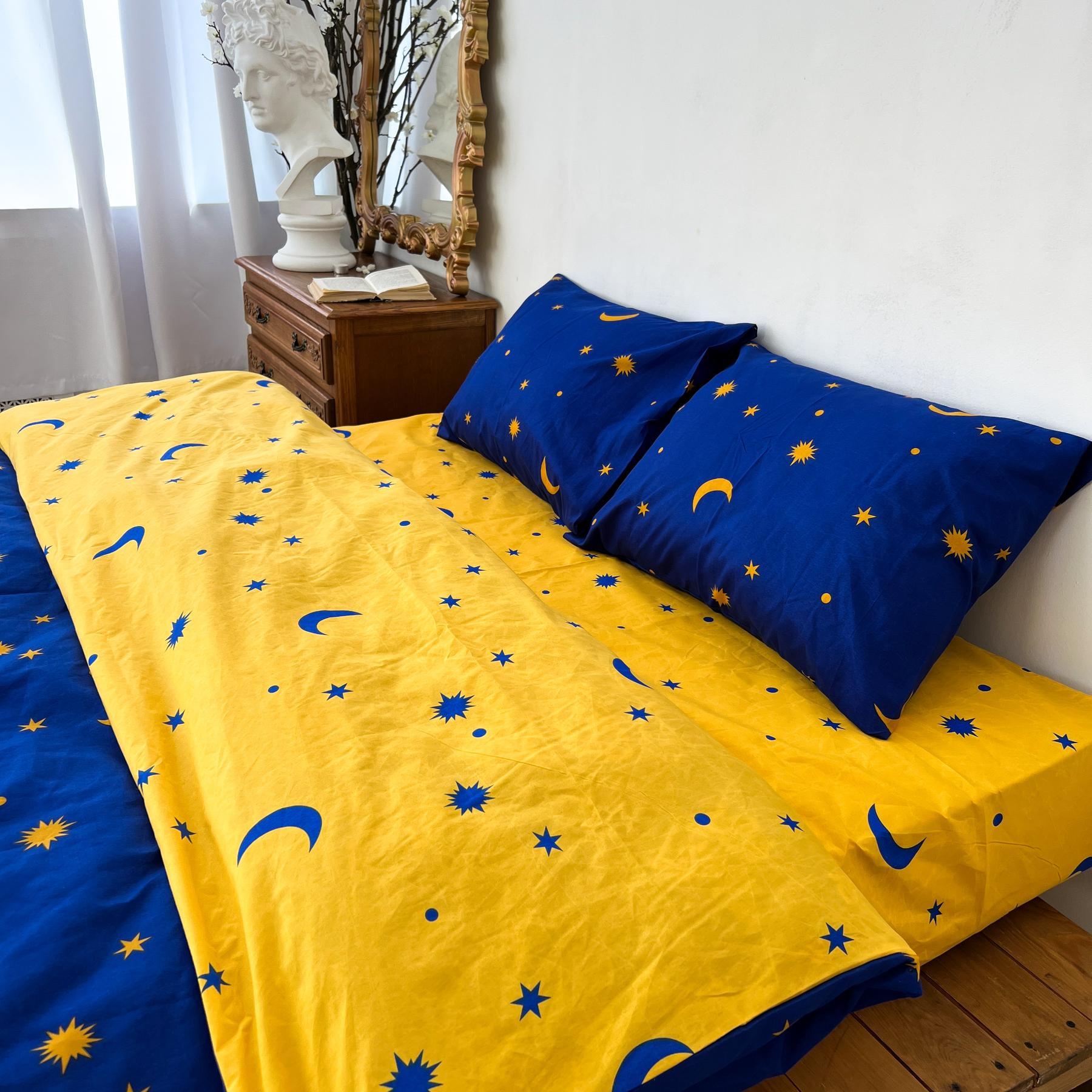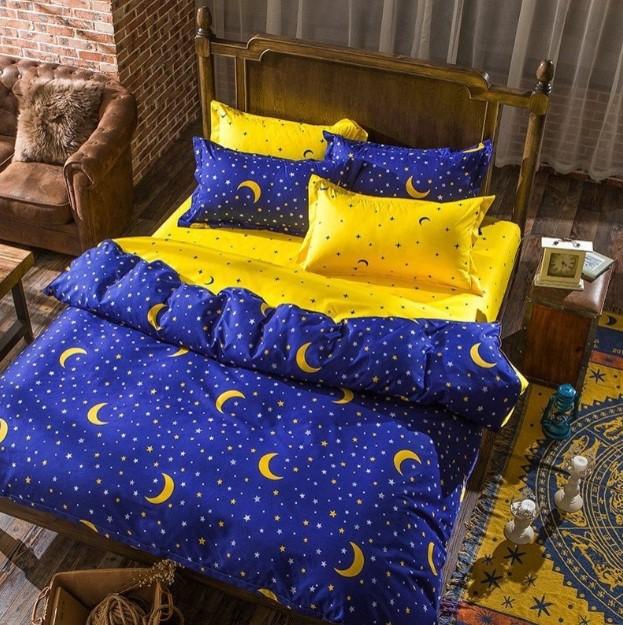 Постельное белье сине желтое наволочки на подушки простыня пододеяльник комплект Темная ночь