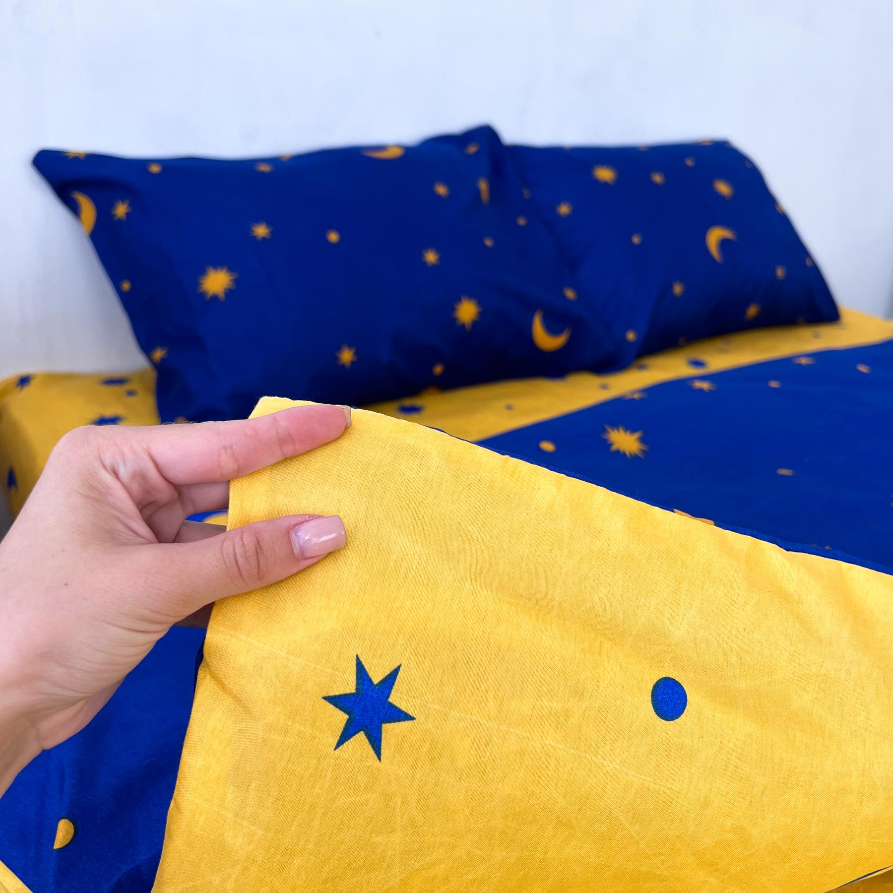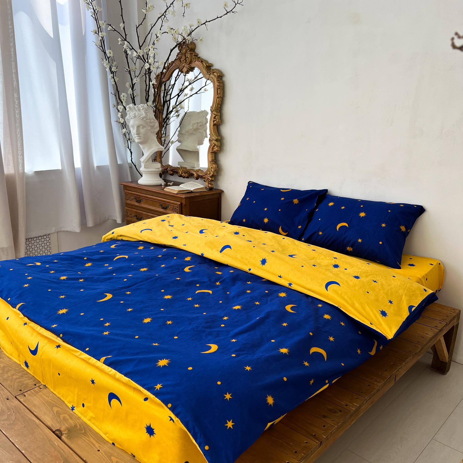 Постельное белье сине желтое наволочки на подушки простыня пододеяльник комплект Темная ночь Sellia Постільна білизна синьо жовта