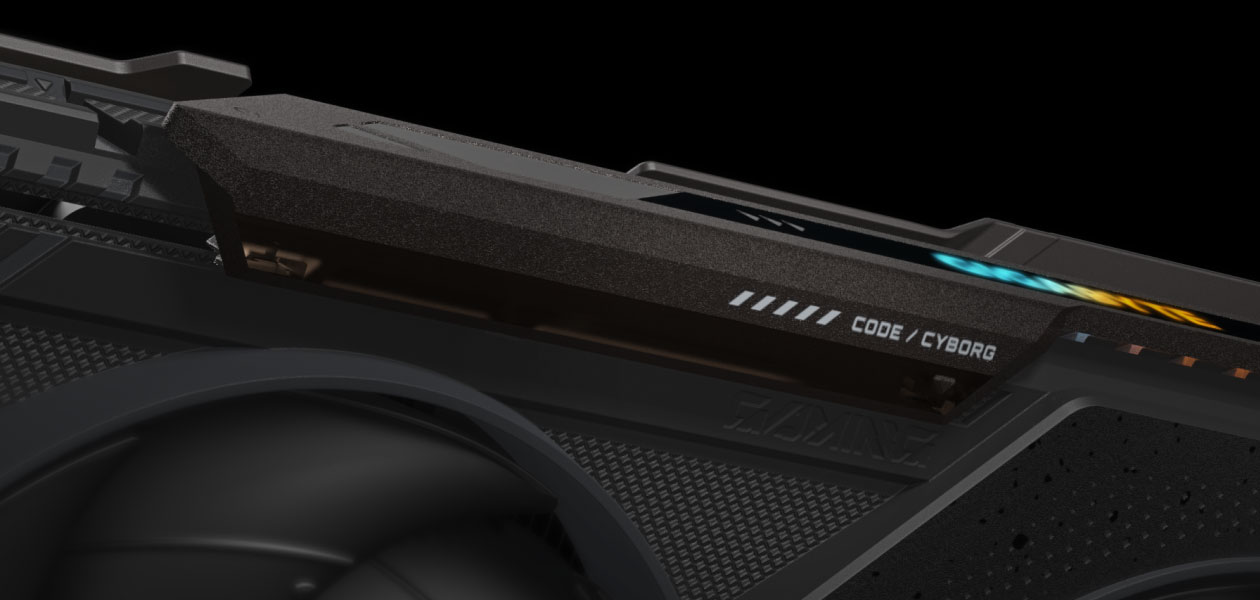 Видеокарта отличается смелым дизайном в стиле мех-брони, сочетающим современную механику с эстетикой будущего. Многослойная структура корпуса, уникальные текстуры и изогнутые поверхности создают мощный визуальный образ. Интегрированная RGB-подсветка с миллионами цветов настраивается через приложение Gigabyte control center и синхронизируется с другими компонентами.