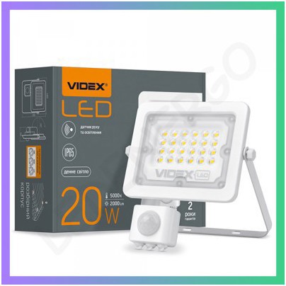 - LED прожектор VIDEX 20W 5000K з датчиком руху та освітленості