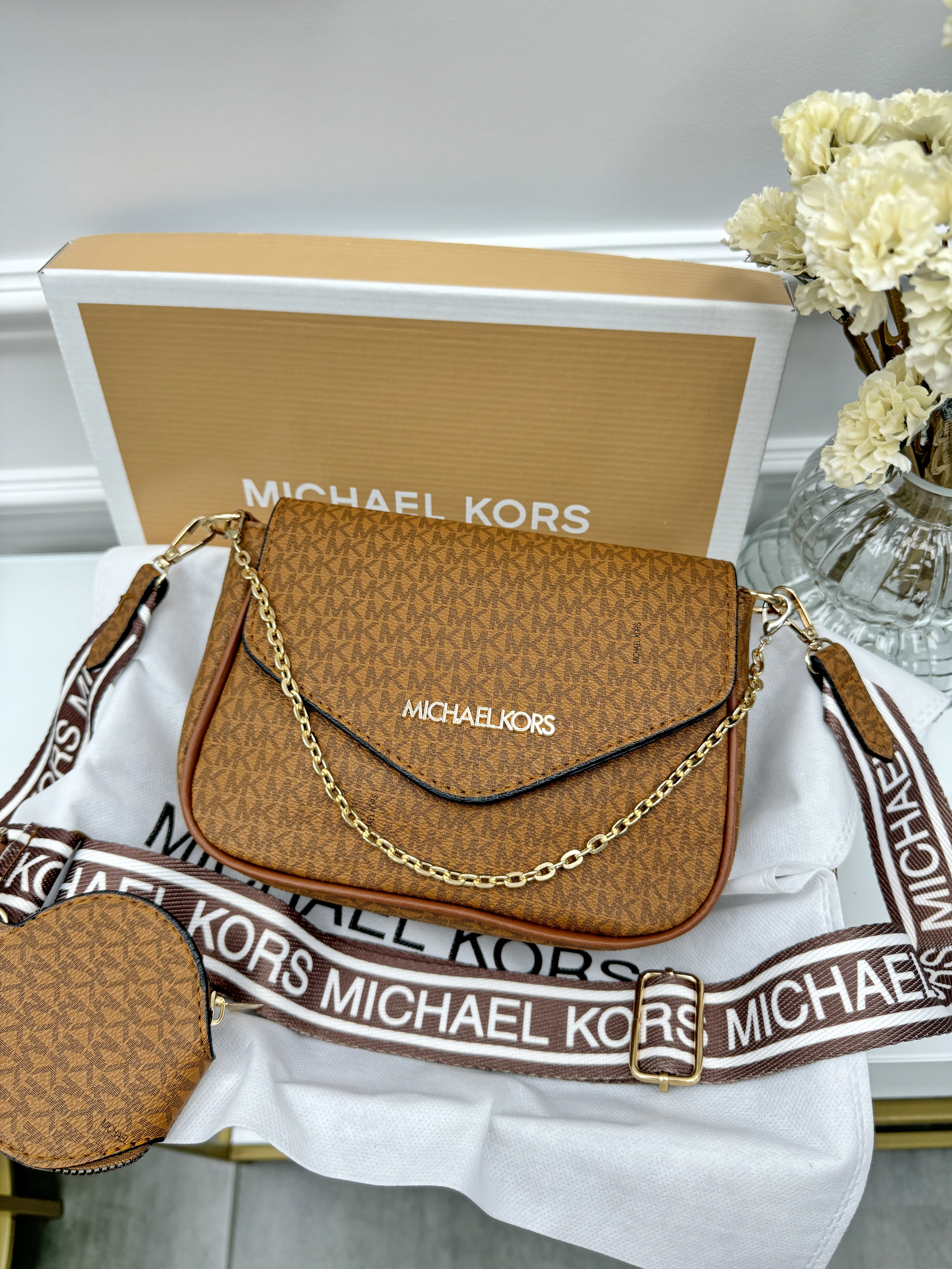 Сумка кросс боди брендовая женская сумочка Майкл Корс 2 в 1 терракот Эко-кожа Michael Kors