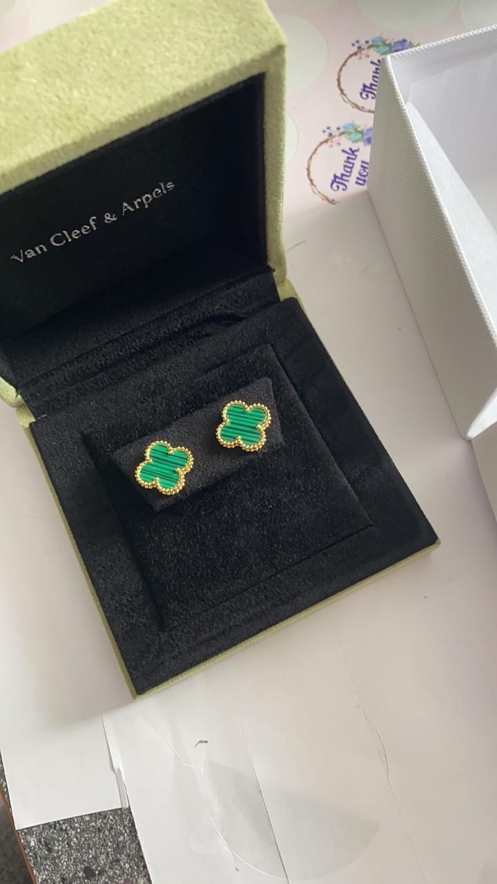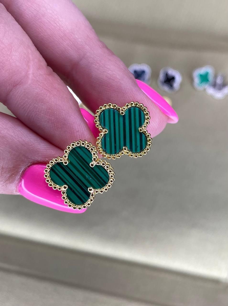 Сережки ван клиф брендовые клевер листик английский замок зеленые малахит Шарики Van Cleef