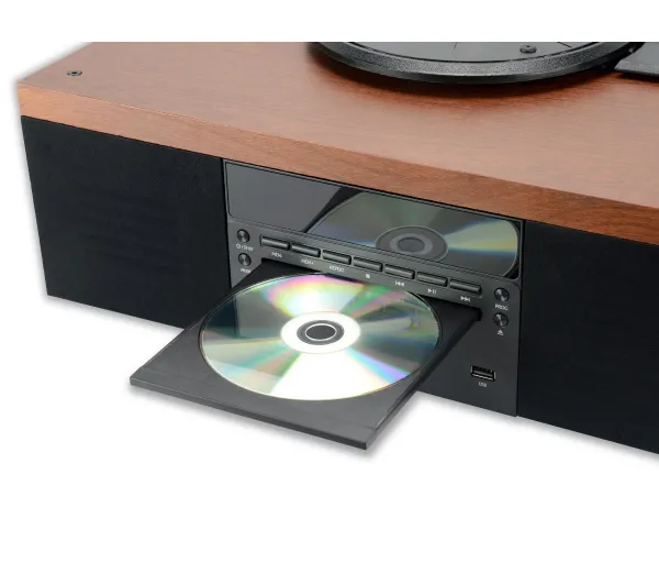 CD проигрывательВоспроизводи свои любимые цифровые и аналоговые альбомы, когда только хочешь. Этот проигрыватель виниловых дисков имеет встроенный CD-проигрыватель (компакт-диск). Так что ты можешь пользоваться своей коллекцией пластинок без необходимости приобретать дополнительное оборудование. Экономишь место и деньги, получая удобство и комплексное аудиорешение, закройте в одном устройстве.