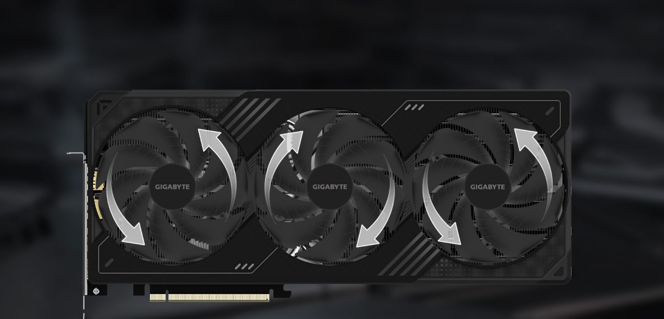 Вентилятор Hawk имеет уникальную конструкцию лопастей, вдохновленную аэродинамикой крылаí. Такая конструкция снижает сопротивление воздуха и уровень шума, что приводит к увеличению давления воздуха на 53,6% и увеличению объема воздуха на 12,5% без ухудшения акустики. 3D Active Fan обеспечивает полупассивное охлаждение, и вентиляторы остаются выключенными, когда графический процессор находится в режиме низкой нагрузки или игры с низким энергопотреблением.