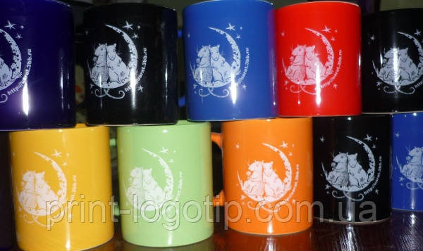 Гуртки фарфоровие. Для друку можна вибрати один з 8-ми кольорів, від білого або жовтого, до чорного або бордового. Всі гуртки під логотип мають літраж - 300мл.