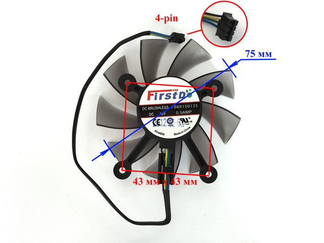 В описании товара указаны детальные характеристики товара. При подборе вентилятора для видеокарты, в первую очередь, нужно обращать внимание на размеры и подключение кулера. Потому что, у одной и той же видеокарты может быть несколько разных систем охлаждения. Также под одной и той же маркировкой, может быть несколько разных вентиляторов.