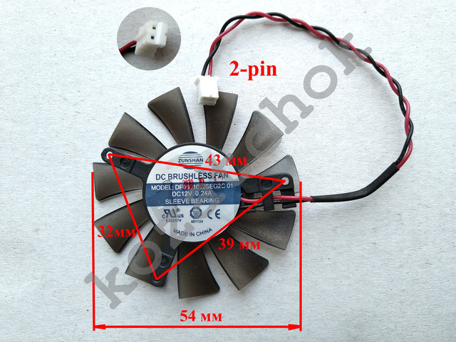 В описании указаны детальные характеристики товара. При подборе вентилятора для видеокарты, в первую очередь, нужно обращать внимание на размеры и подключение кулера. Потому что, у одной и той же видеокарты может быть несколько разных систем охлаждения. Также под одной и той же маркировкой, может быть несколько разных вентиляторов.