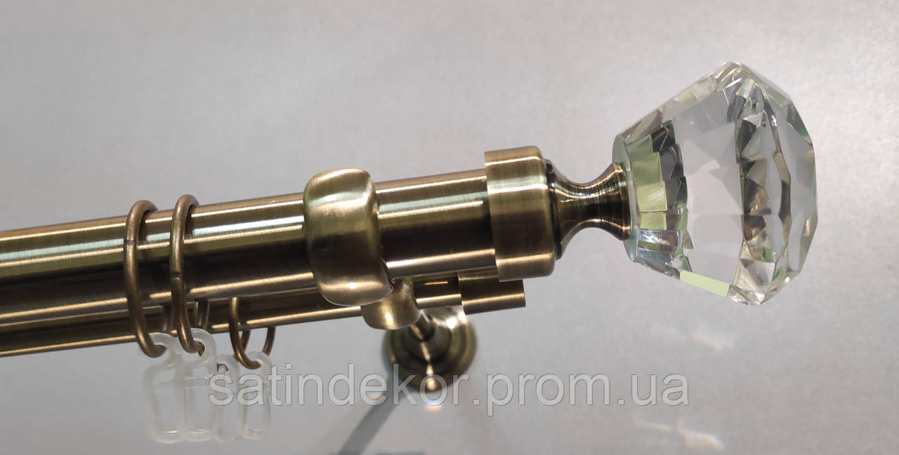 Комплектація: Труба гладка 25мм 3.0м. -1шт., Труба гладка 3.0м 19мм - 1шт. Тримач подвійний 25+19мм відкритий - 3шт. Закінчення D25мм Спектралія (як на фото) - 2шт. Заглушка 19мм - 2шт. Кільце до труби D25мм - 30шт. Кільце до труби 19мм - 30шт. Гачок на кільце - 60шт.