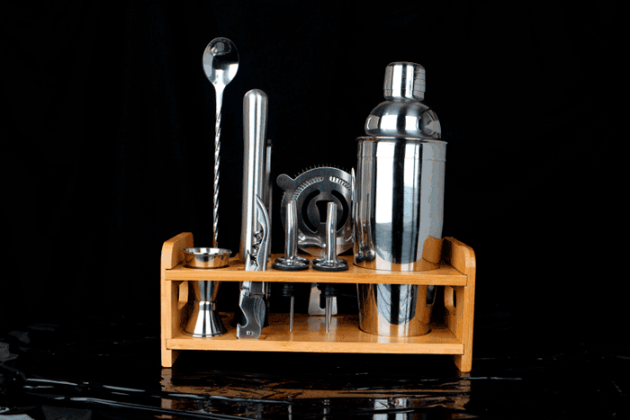 • Інструменти зручно розміщені на стильній дерев'яній підставці, що робить цей набір не тільки функціональним, але й привабливим елементом вашого барного простору.
