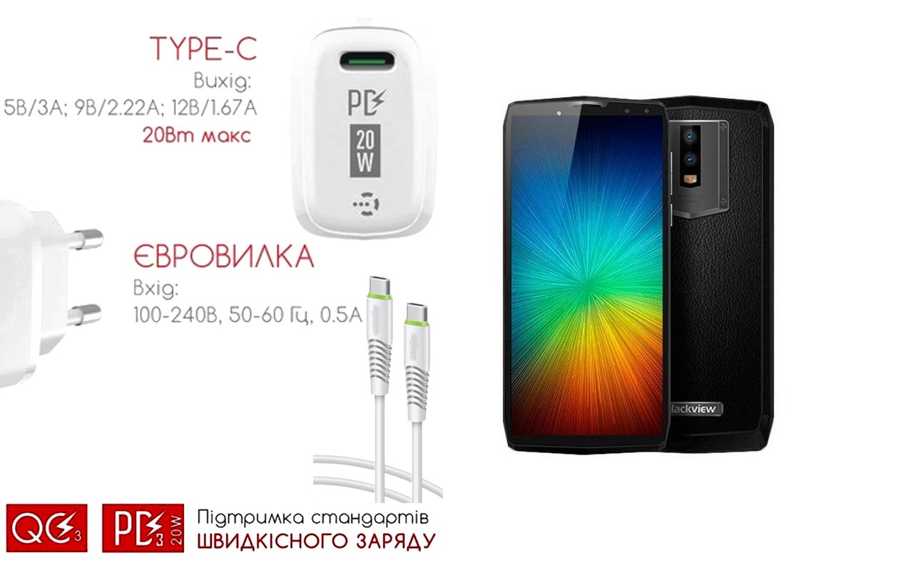 Quick Charger 20W 3A для смартфона Blackview P10000 Pro, Швидка зарядка