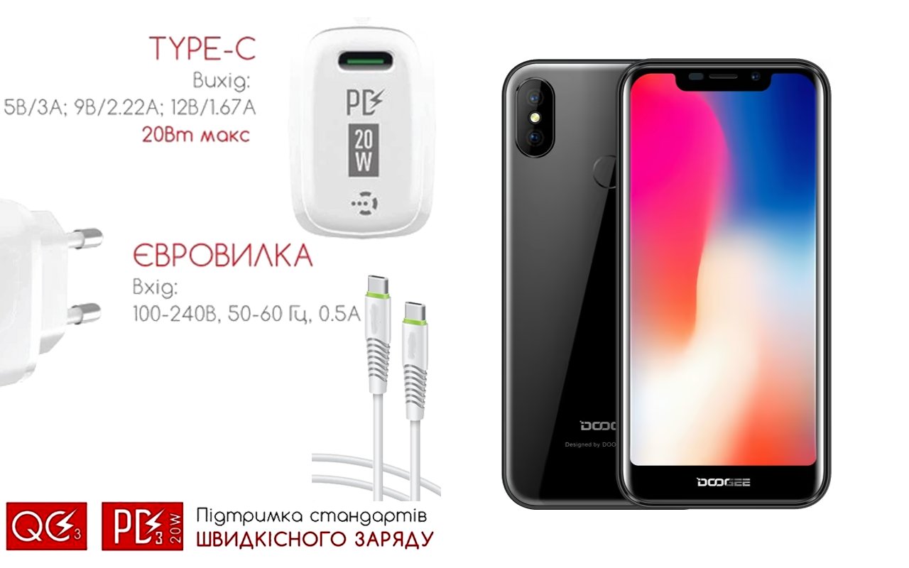 Quick Charger 20W 3A для смартфона DOOGEE X70, Швидка зарядка
