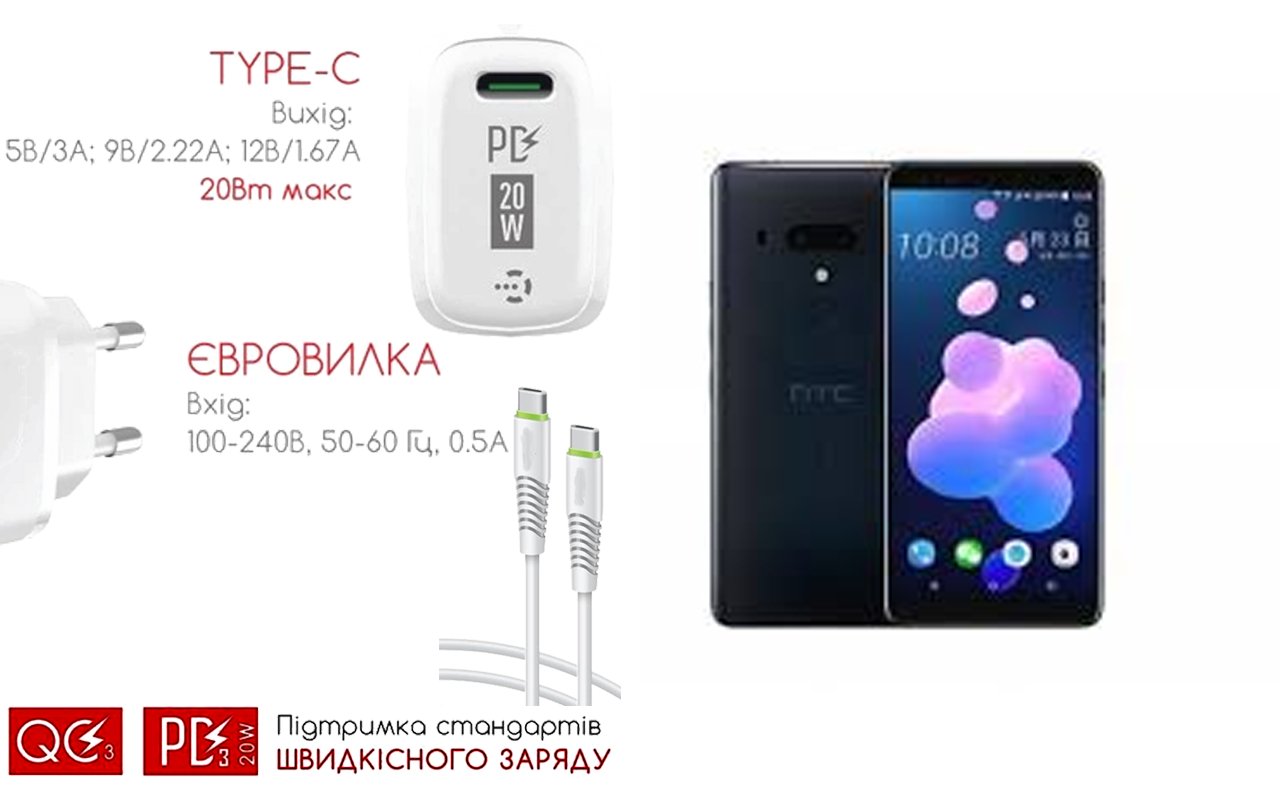 Quick Charger 20W 3A для смартфона HTC U12 Plus, Швидка зарядка