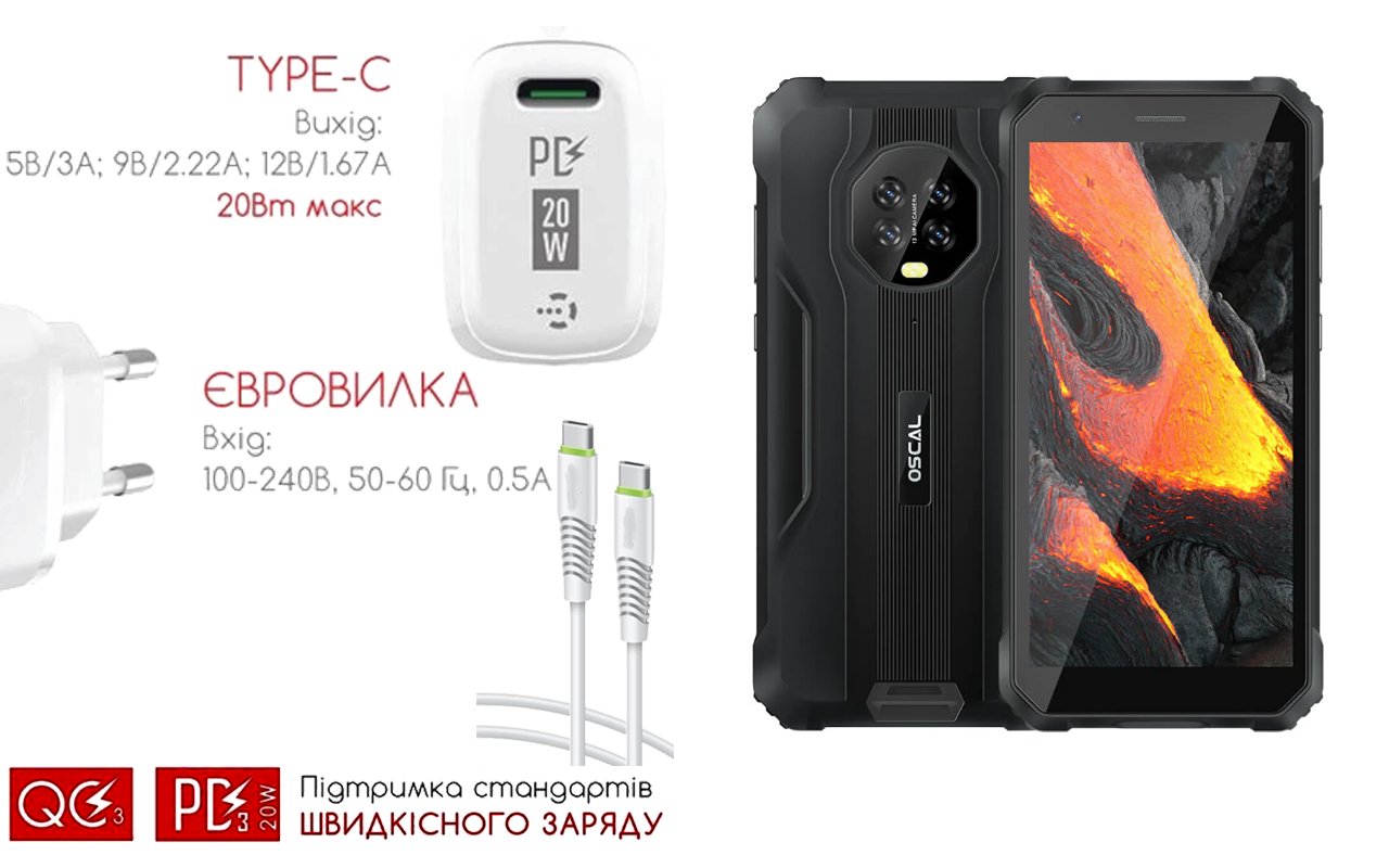 Мобільні телефони Blackview Oscal S60 Pro з можливістю заряджання від USB Type-C порту