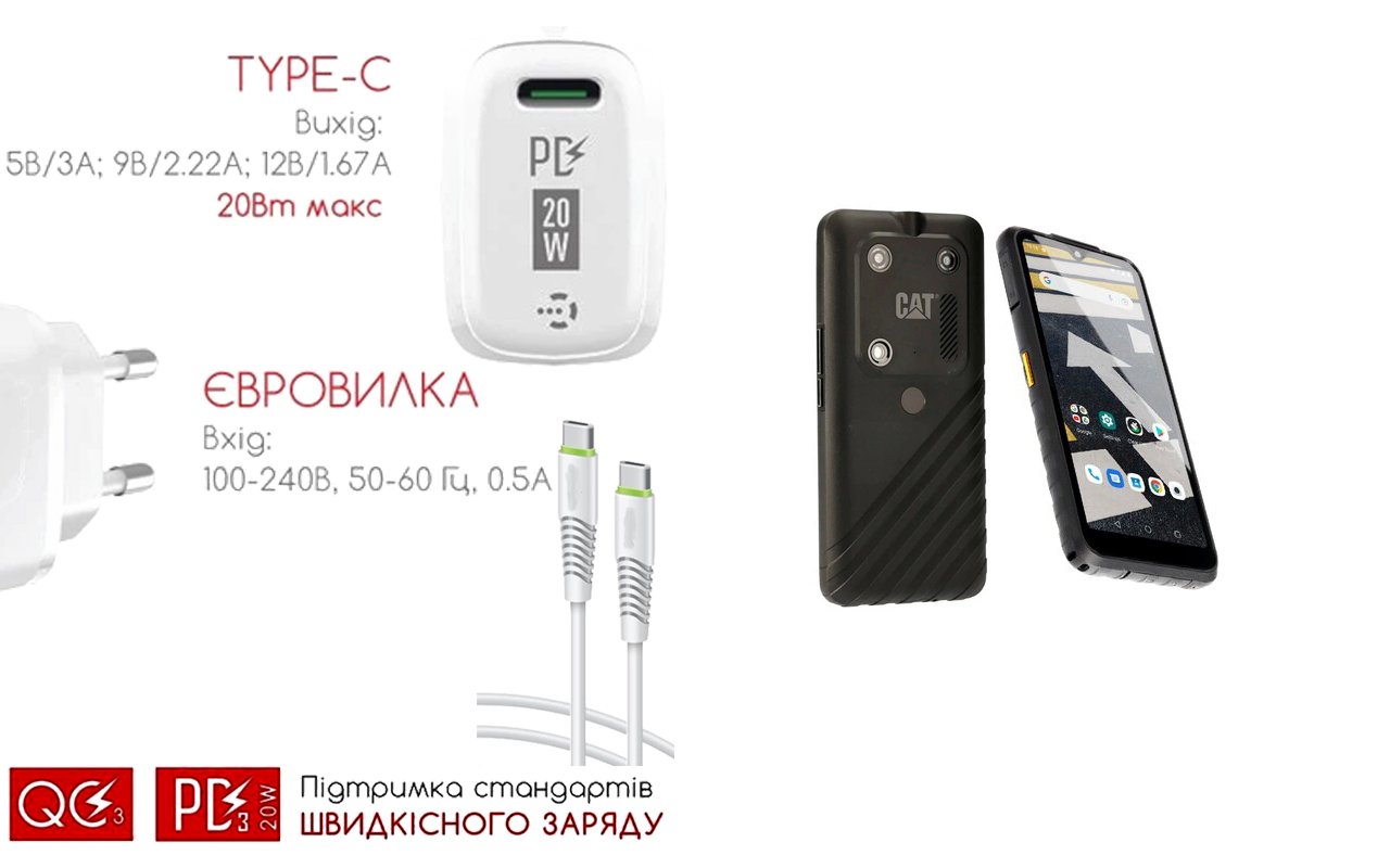 Quick Charger 20W 3A для смартфона CAT S53, Швидка зарядка