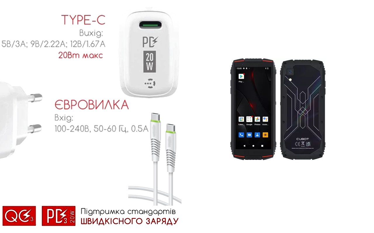 Quick Charger 20W 3A для смартфона Cubot King Kong Mini 3, Швидка зарядка