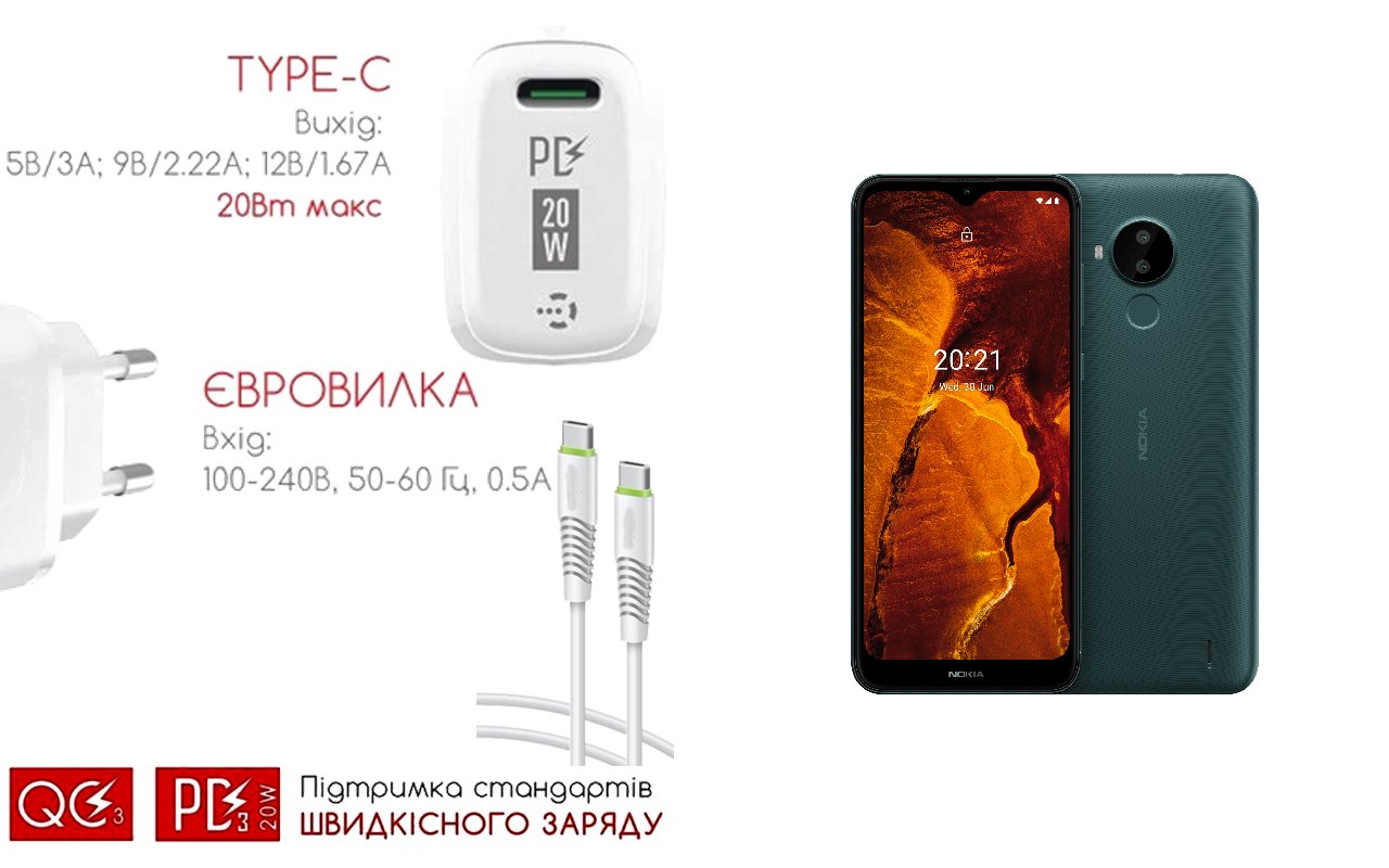 Quick Charger 20W 3A для смартфона Nokia C30, Швидка зарядка