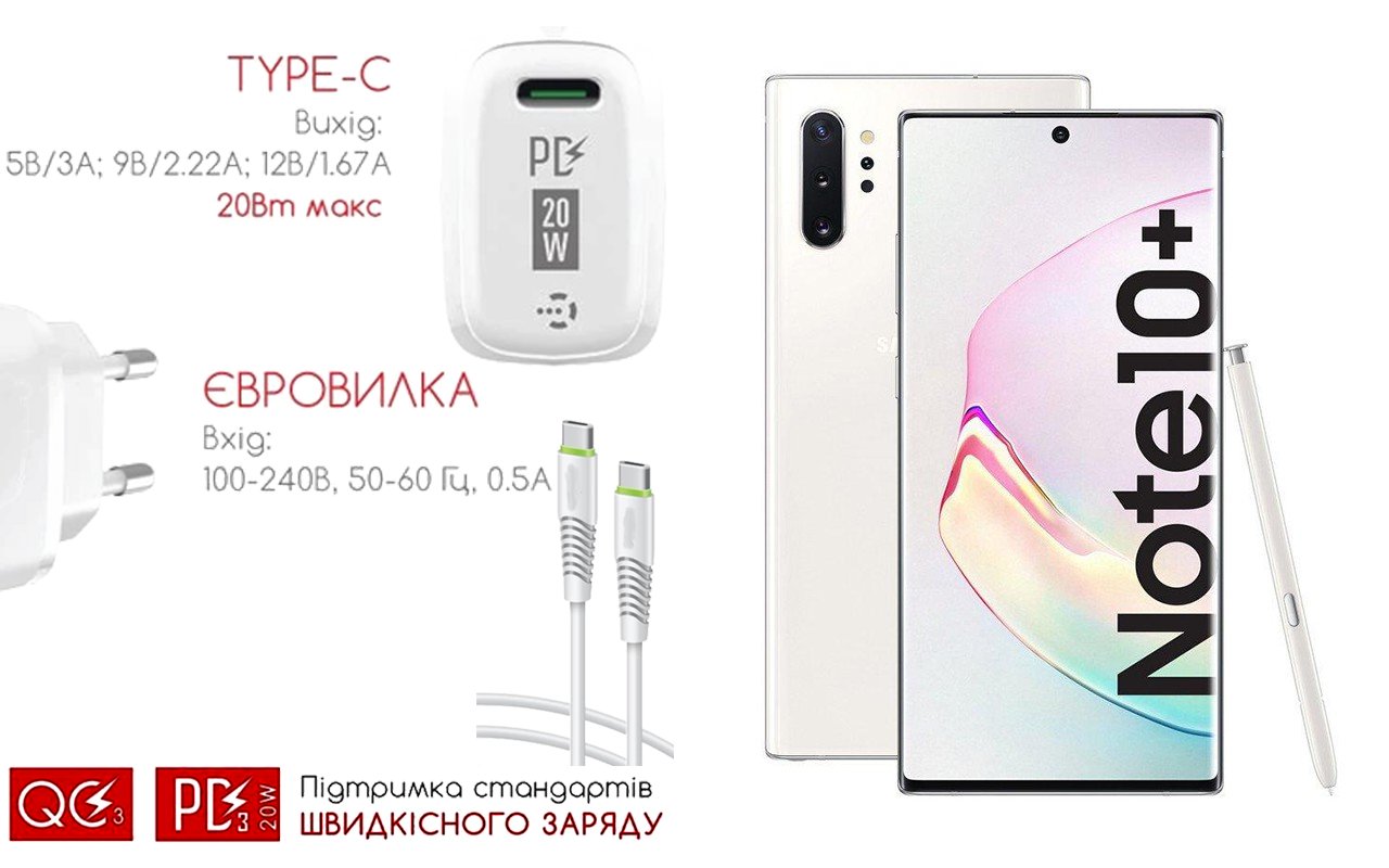 Quick Charger 20W 3A для смартфона Samsung Galaxy Note 10 Lite, Швидка зарядка