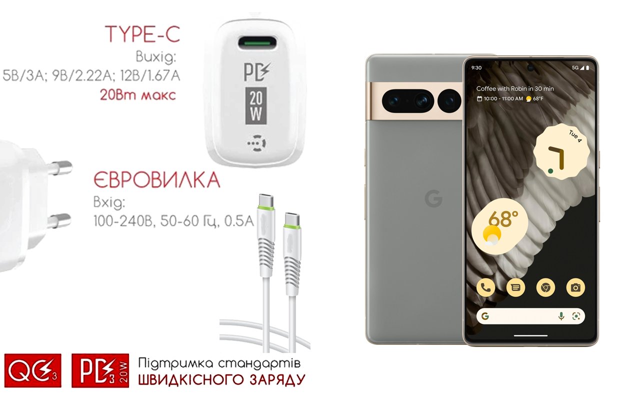 Quick Charger 20W 3A для смартфона Google Pixel 7 Pro, Швидка зарядка