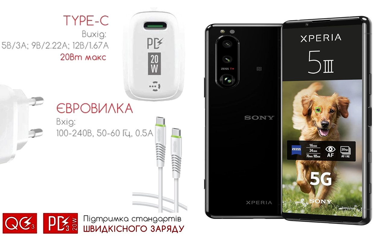 Мобільні телефони Sony Xperia 5 III з можливістю заряджання від USB Type-C порту