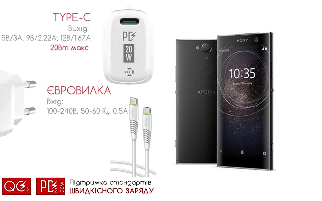 Quick Charger 20W 3A для смартфона Sony Xperia XA2 H4133, Швидка зарядка
