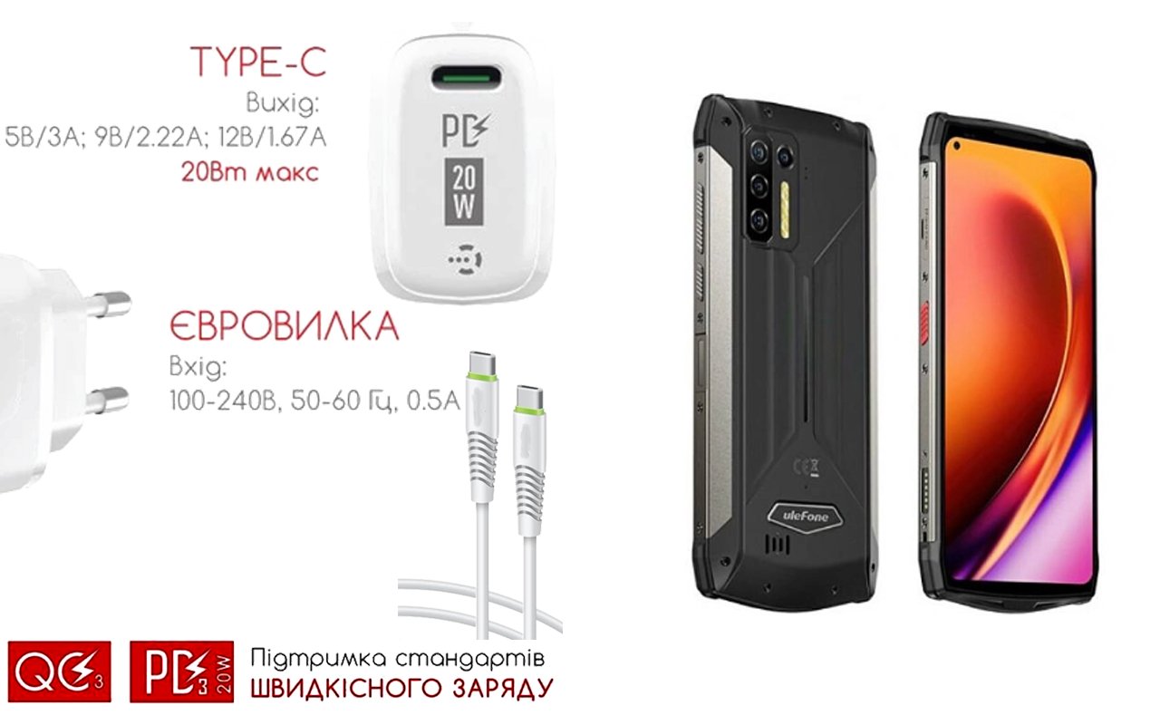 Quick Charger 20W 3A для смартфона Ulefone Power Armor 13, Швидка зарядка