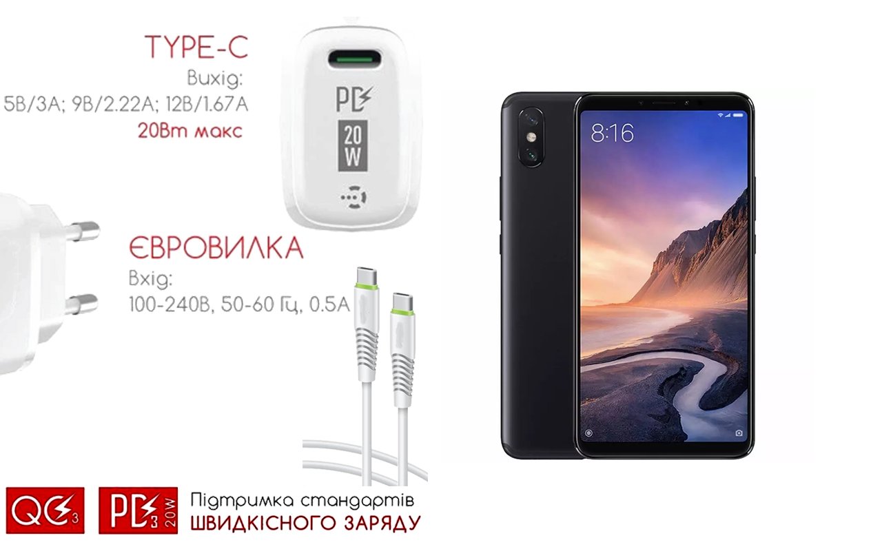 Quick Charger 20W 3A для смартфона Xiaomi Mi Max 3, Швидка зарядка