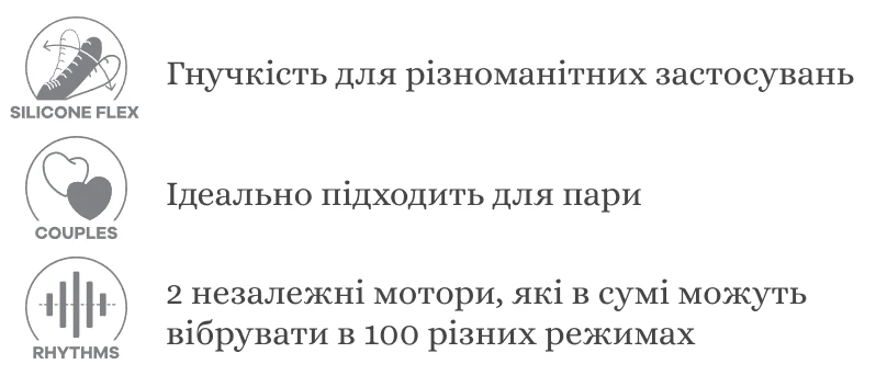 • 10 разных режимов вибрации для каждого мотора (их можно использовать отдельно)