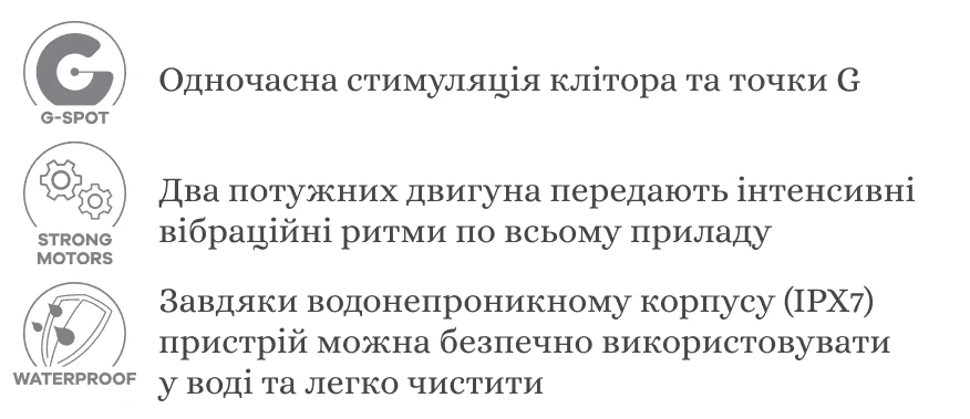 - 3 мотори, які дарують невимовний шквал емоцій і поширюють по всій іграшці хвилі чуттєвого впливу;