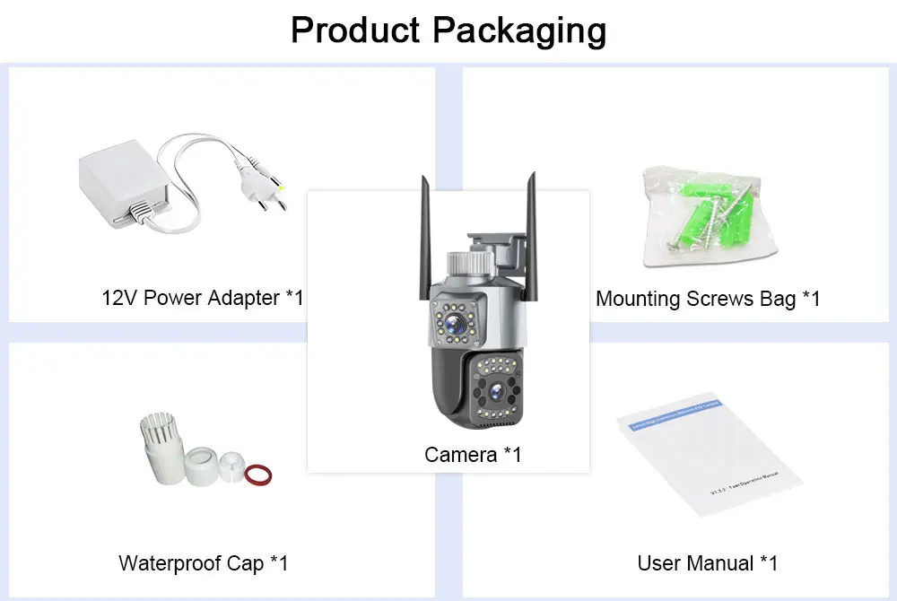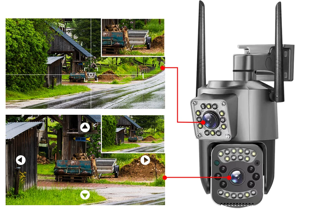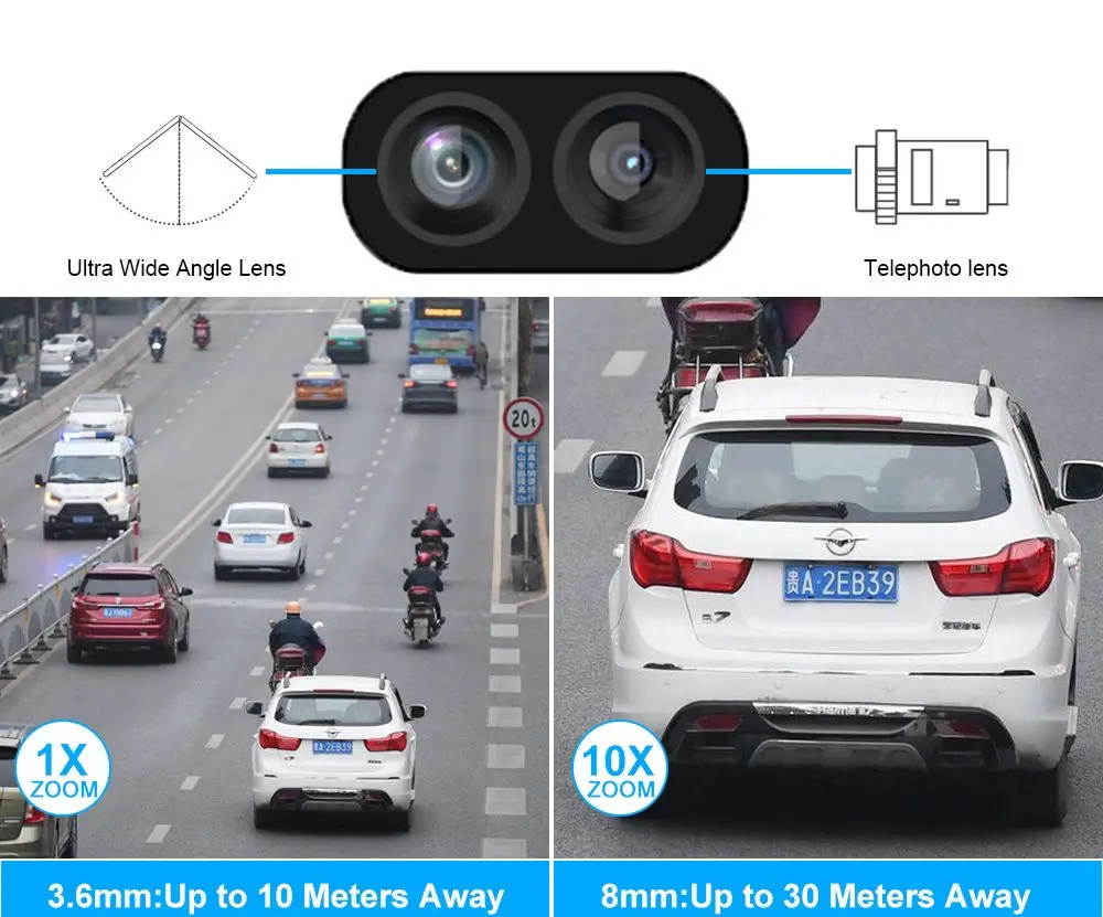 Камера имеет два встроенных объектива, верхний объектив 3,6 мм, нижний объектив 8 мм, а нижний объектив поддерживает 10-кратную цифровую функцию, вы можете увеличить масштаб, чтобы увидеть более подробную информацию.