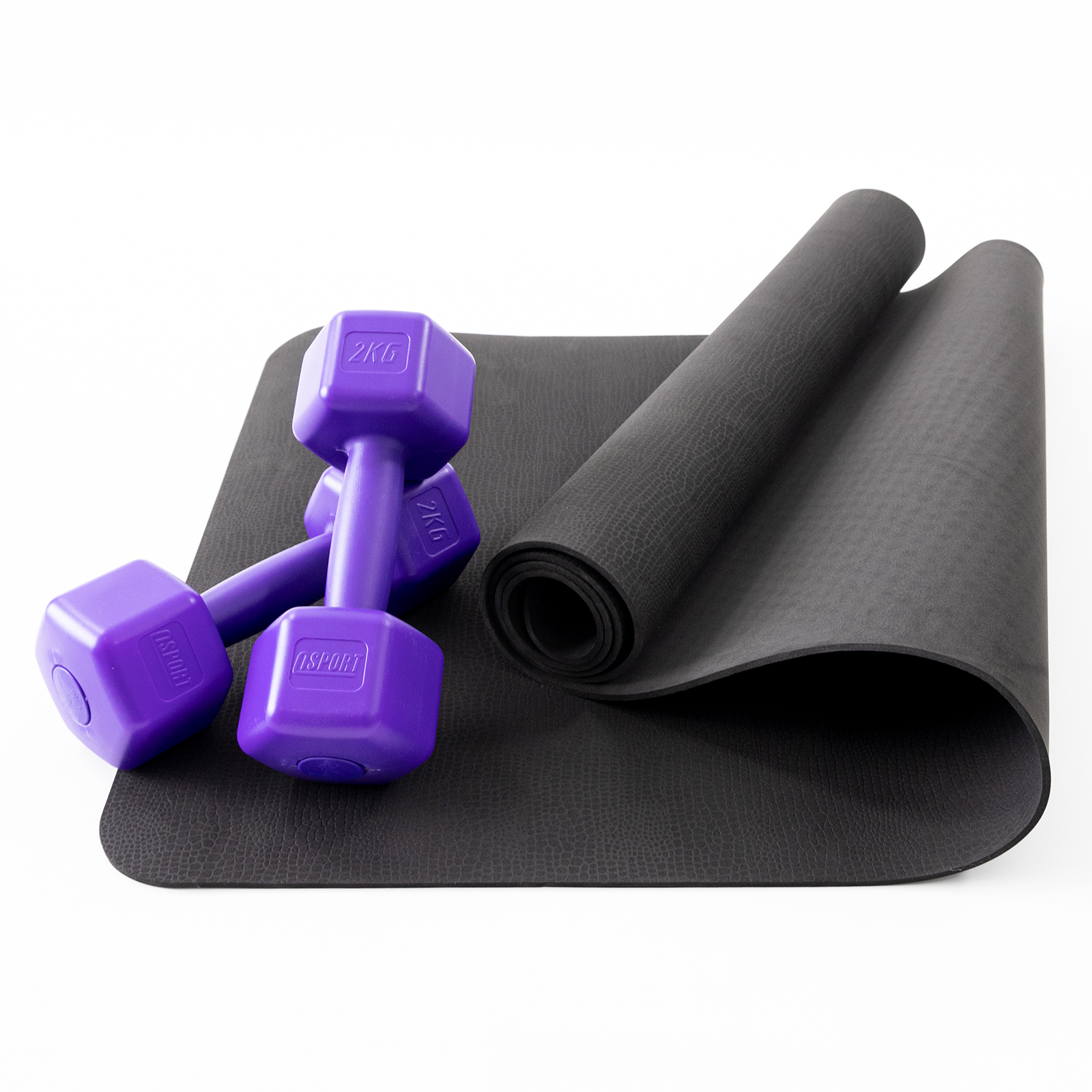 - Комплектація:Каремат, 2 гантели по 2 кг.