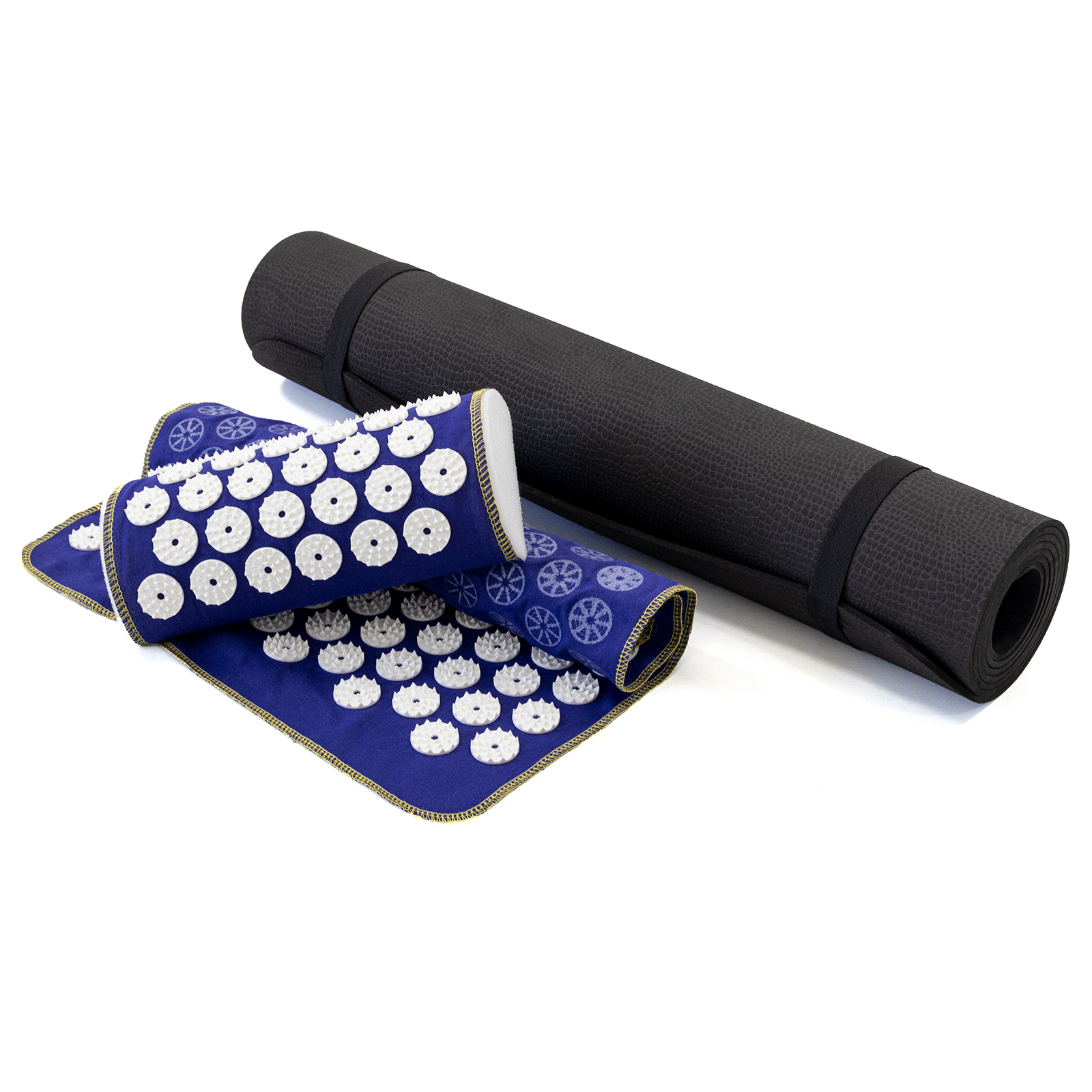 ,Набір для йоги та масажу OSPORT Set, що складається з килимка для йоги та спорту, масажного килимка (Аплікатор Кузнєцова) та масажного валика. Набір ідеально підходить для тренувань, розтяжки та масажу в домашніх умовах. Набір килимок акупунктурний масажний + подушка Аплікатор Кузнєцова - незамінний товариш в області лікування організму, наданні йому релаксу а також профілактики хвороб попереку. Відмінне опрацьовує всі можливі проблемні зони в організмі людини. Позбавляє організм від болю в суглобах, шиї та надає відмінний робочий тонус, а також збільшує статеву активність. Сучасна ультразвукова спайка колючок з тканиною, без смердючого і отруйного клею! А нековзний килимок для фітнесу стане вашою опорою під час тренувань. Товщина 3 мм і сучасний матеріал виготовлення забезпечують відмінну амортизацію. Крім того, килимок можна використовувати як для занять йогою, так і для занять фітнесом.