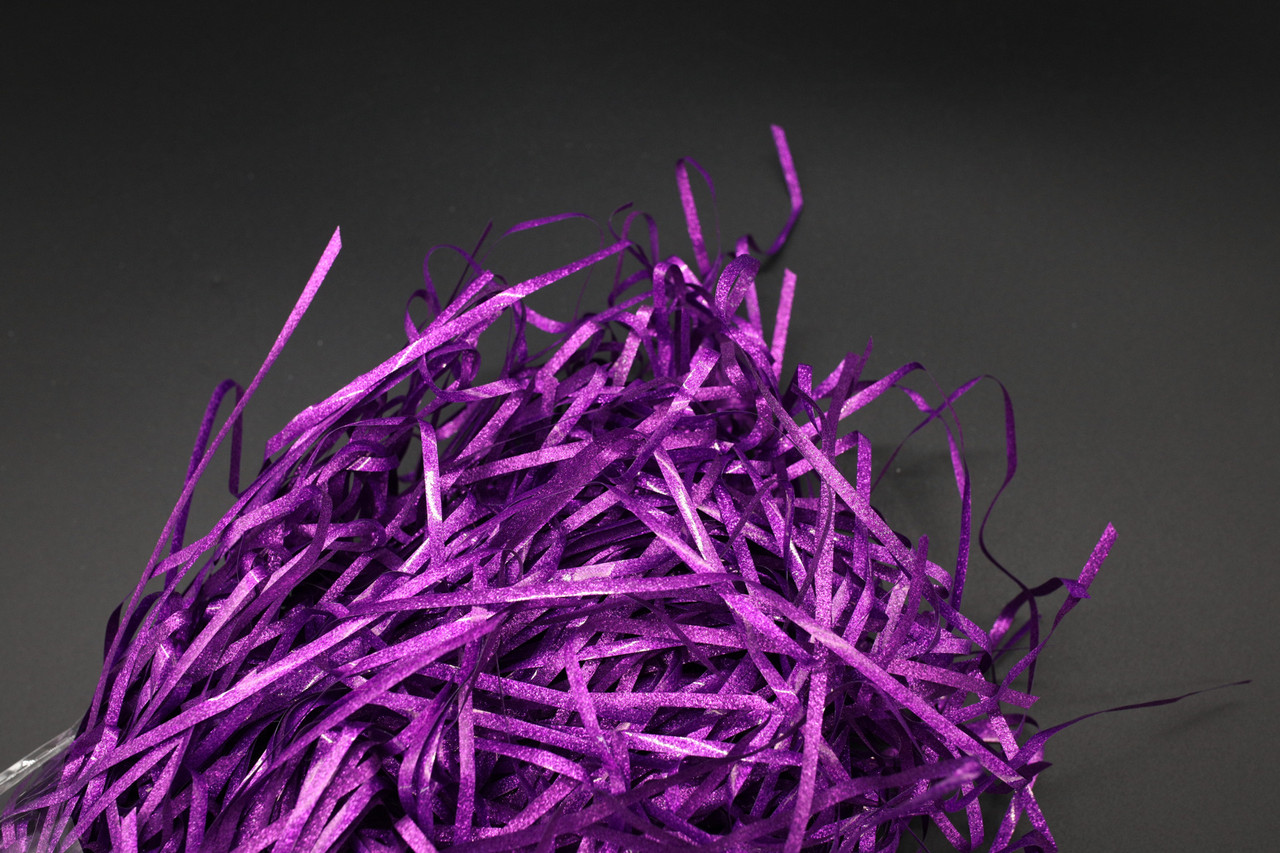 Наповнювач для коробок. Паперова стружка з глітером для упаковки. Колір фіолетовий. 30грам