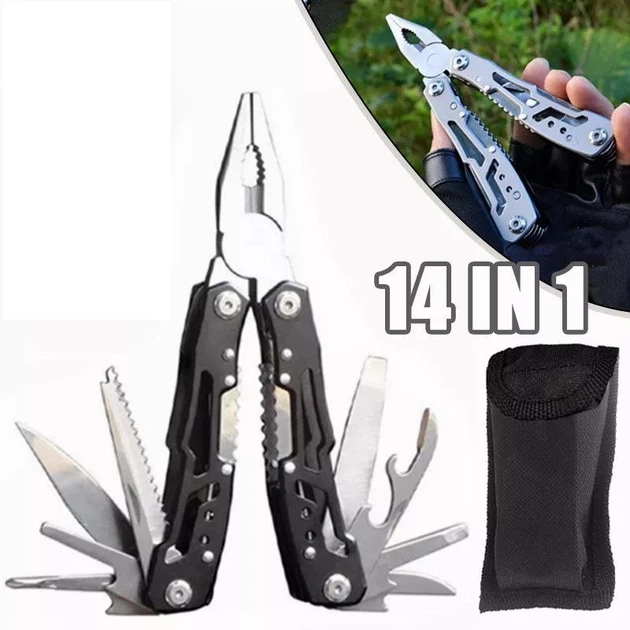 Мультиінструмент 14 в 1 являє собою незамінний аксесуар для різних ситуацій. З його різними інструментами він забезпечує легкість і швидкість виконання безлічі завдань.