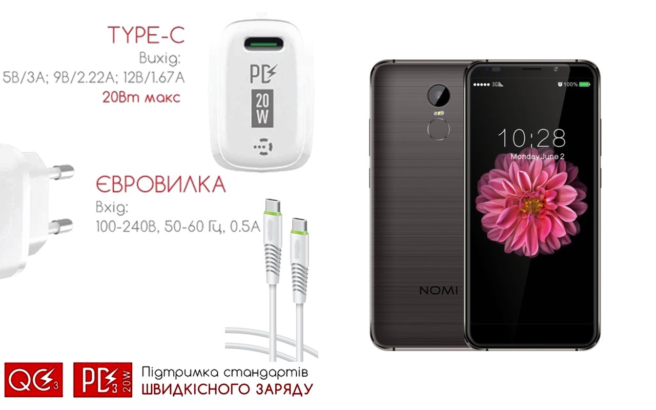 Quick Charger 20W 3A для смартфона Nomi i5730 Infinity, Швидка зарядка