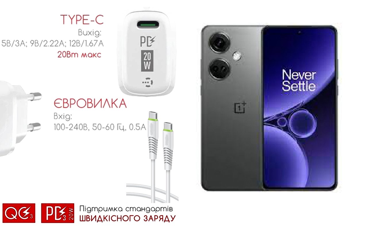 Quick Charger 20W 3A для смартфона OnePlus Nord CE 3 Lite, Швидка зарядка