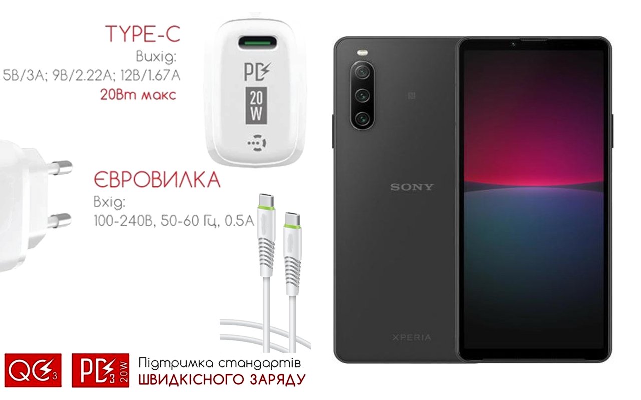 Quick Charger 20W 3A для смартфона Sony Xperia 10 IV, Швидка зарядка